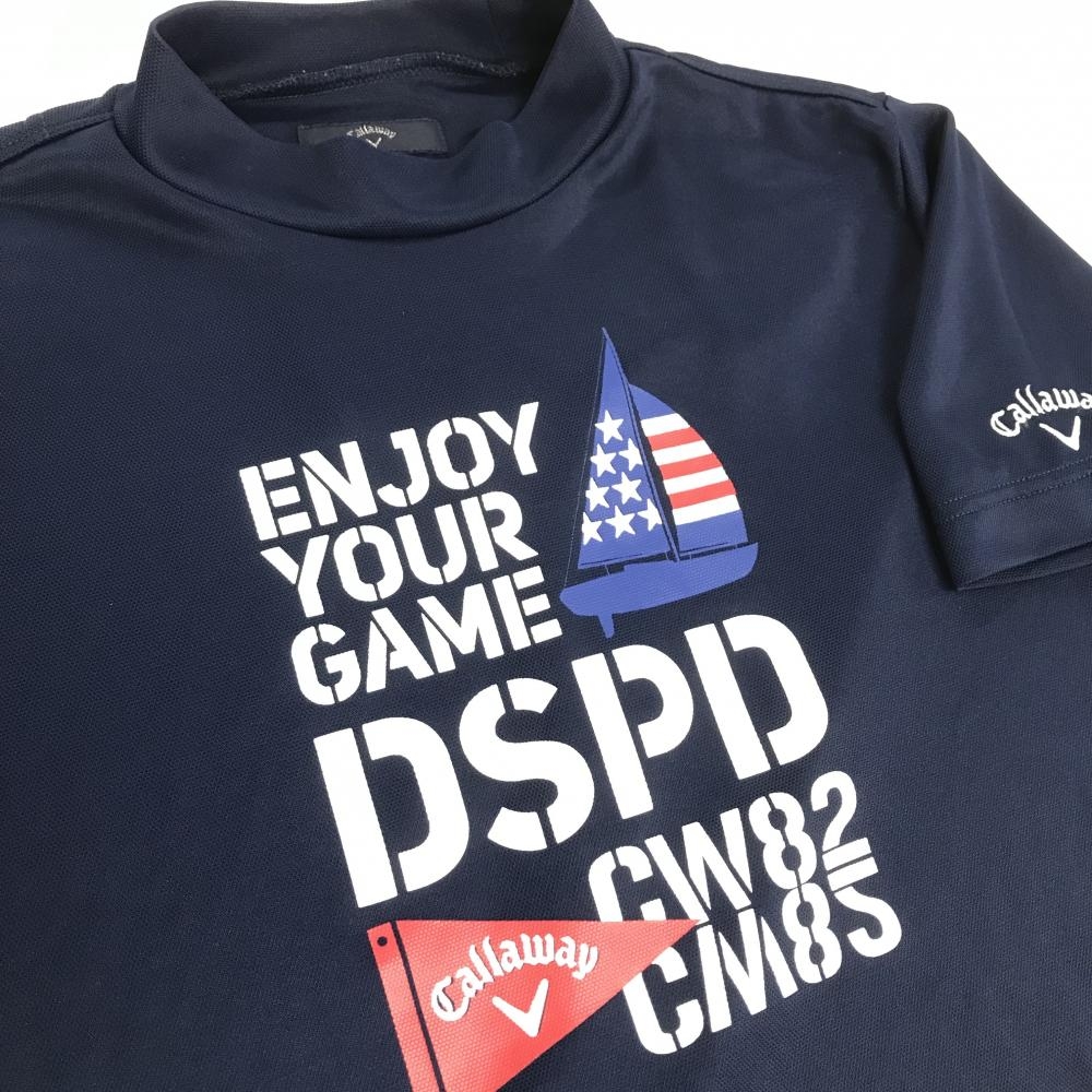 キャロウェイ 半袖ハイネックシャツ ネイビー×白 ヨットプリント メンズ LL ゴルフウェア Callaway