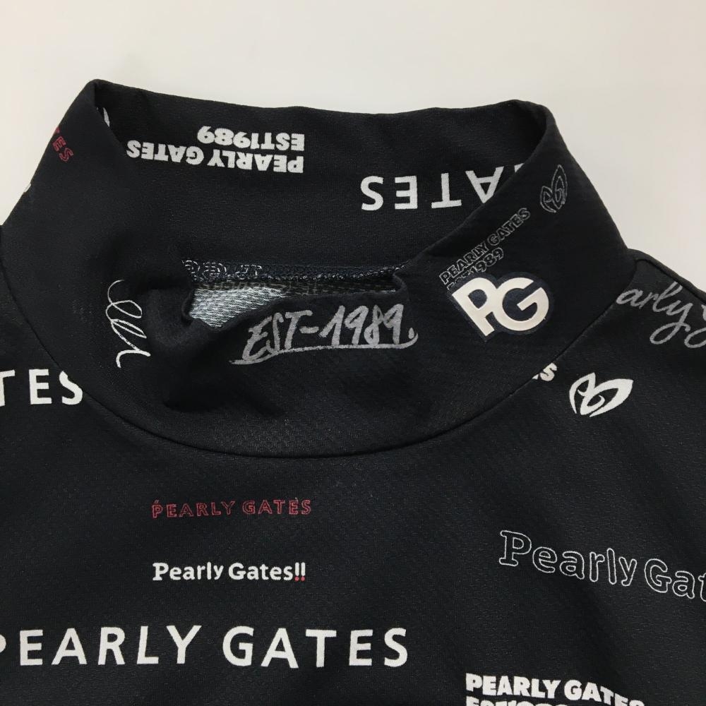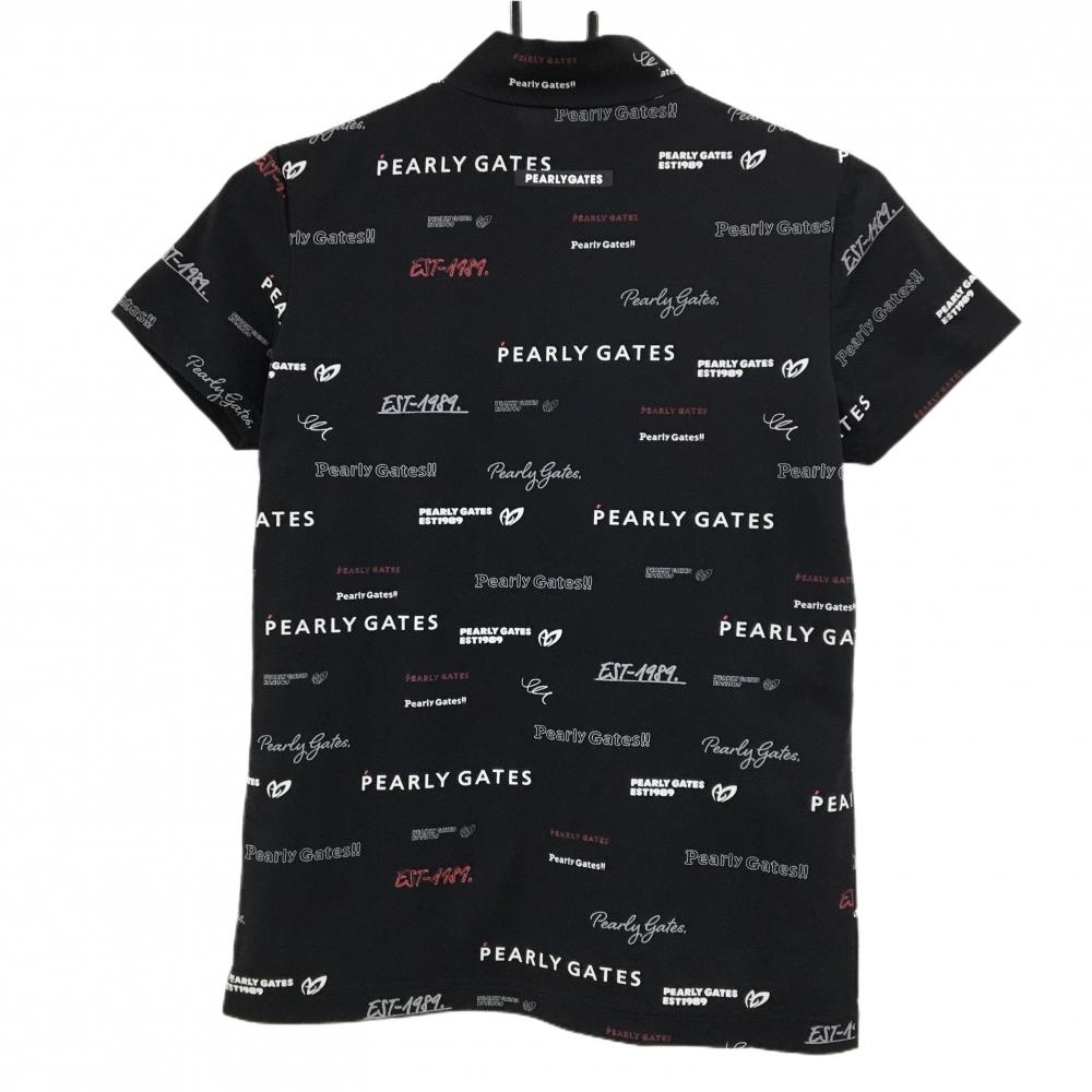 【美品】パーリーゲイツ 半袖ハイネックシャツ 黒×白 ロゴ総柄 ストレッチ レディース ゴルフウェア PEARLY GATES