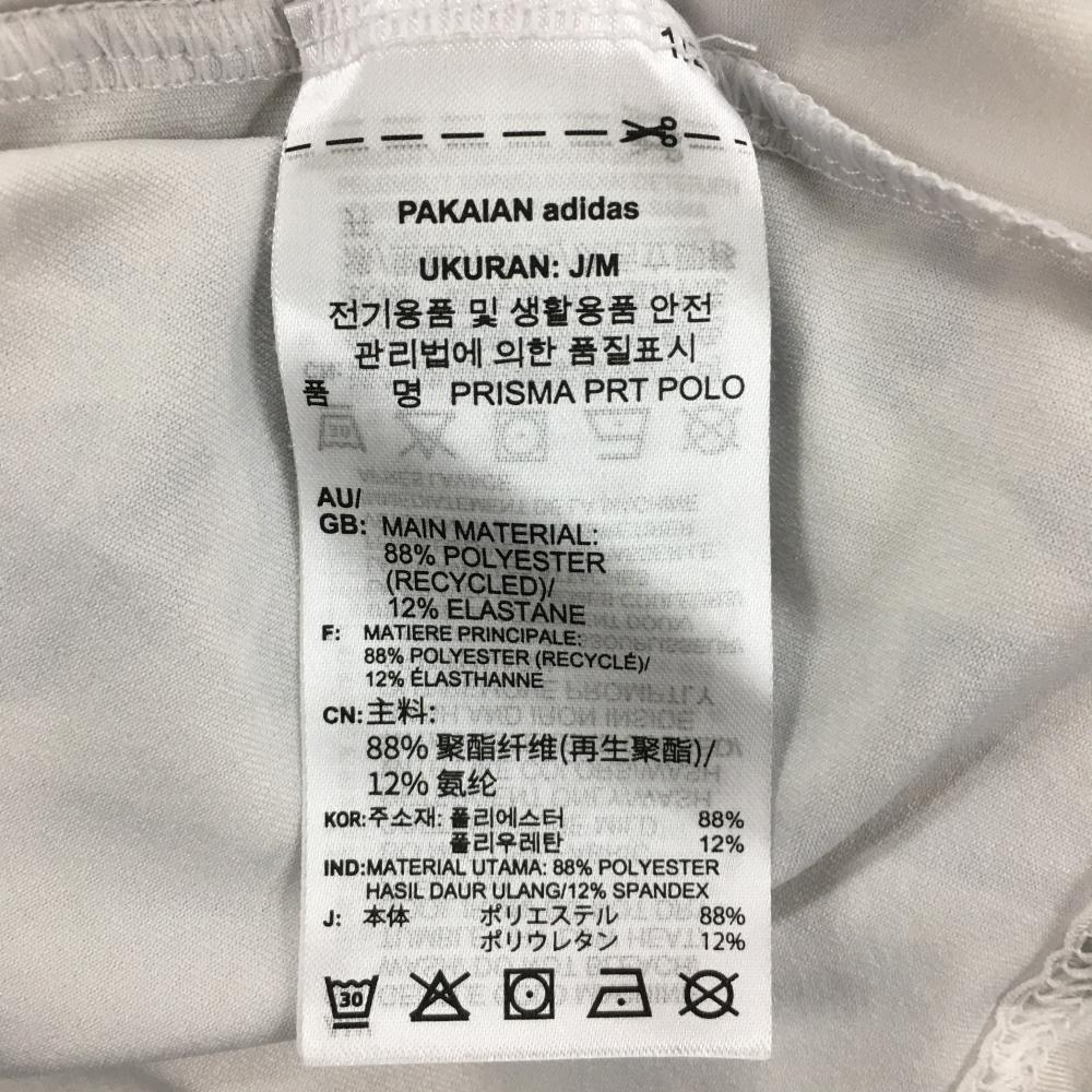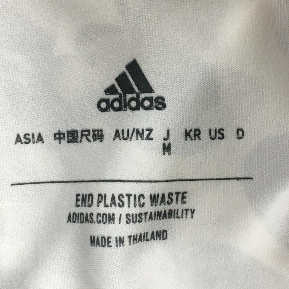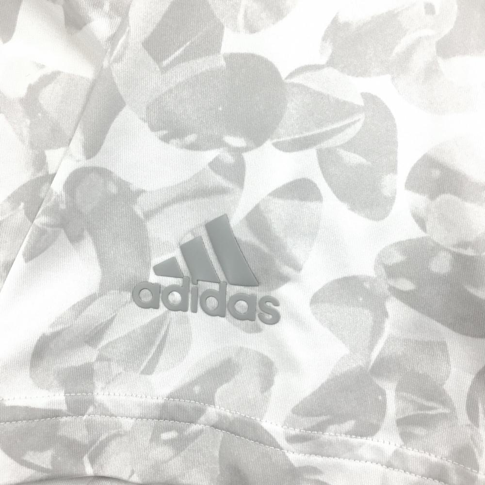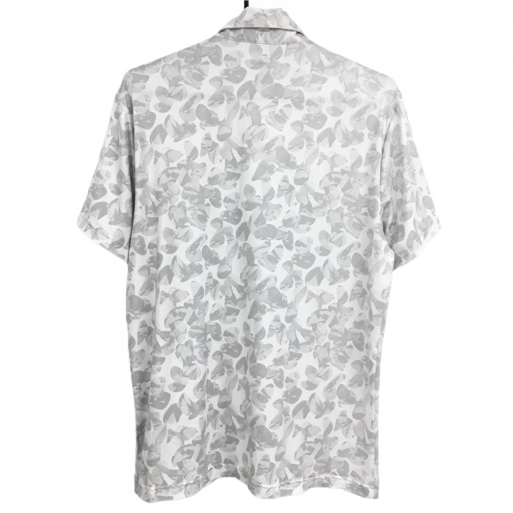 アディダス 半袖ポロシャツ 白×ライトグレー 総柄 袖ロゴ ストレッチ メンズ M ゴルフウェア adidas