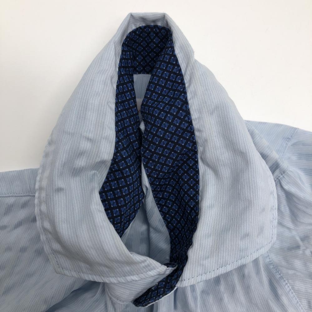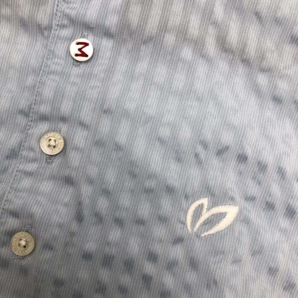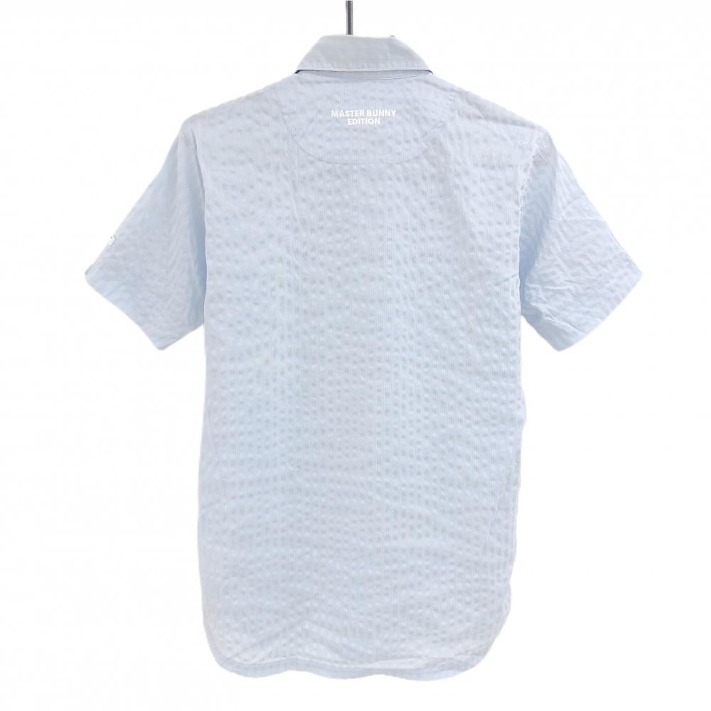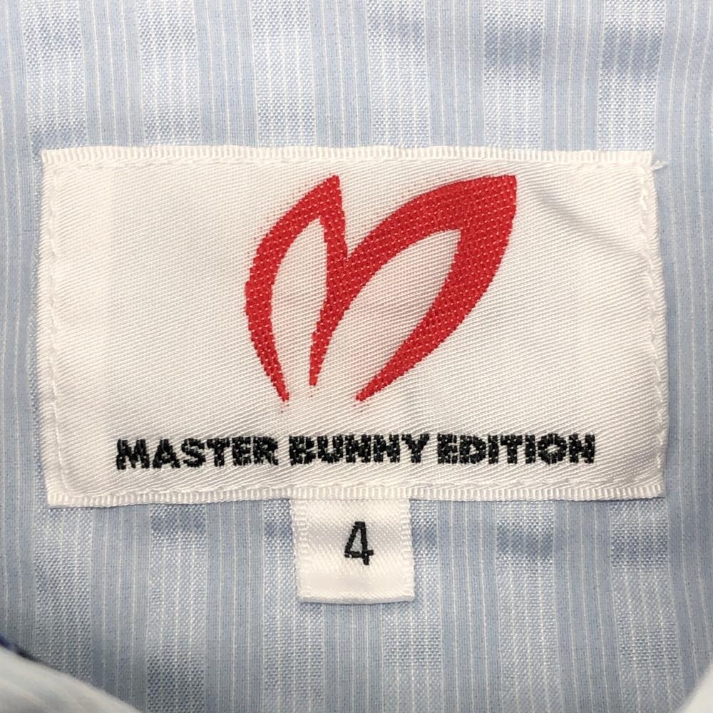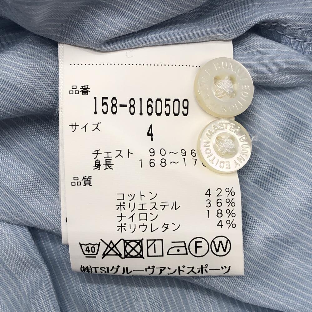 【美品】マスターバニー 半袖ポロシャツ ライトブルー 凸凹織生地 細ストライプ メンズ 4(M) ゴルフウェア MASTER BUNNY EDITION