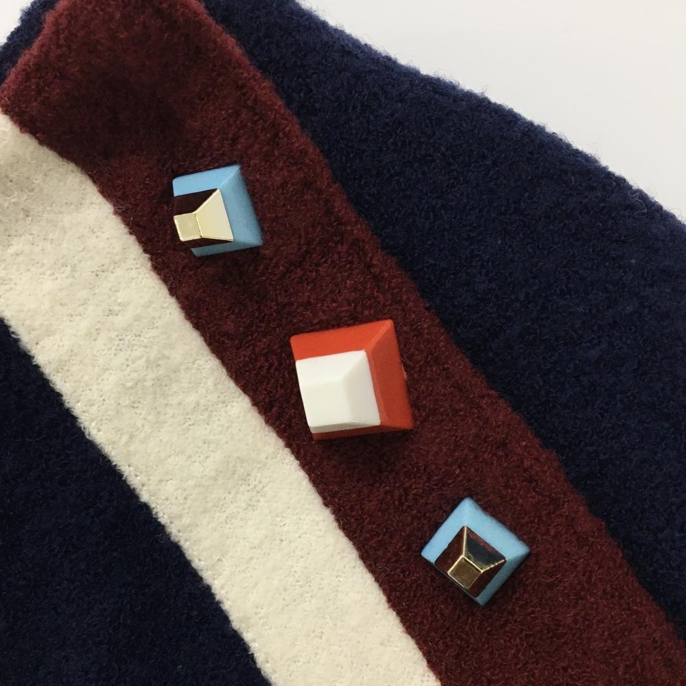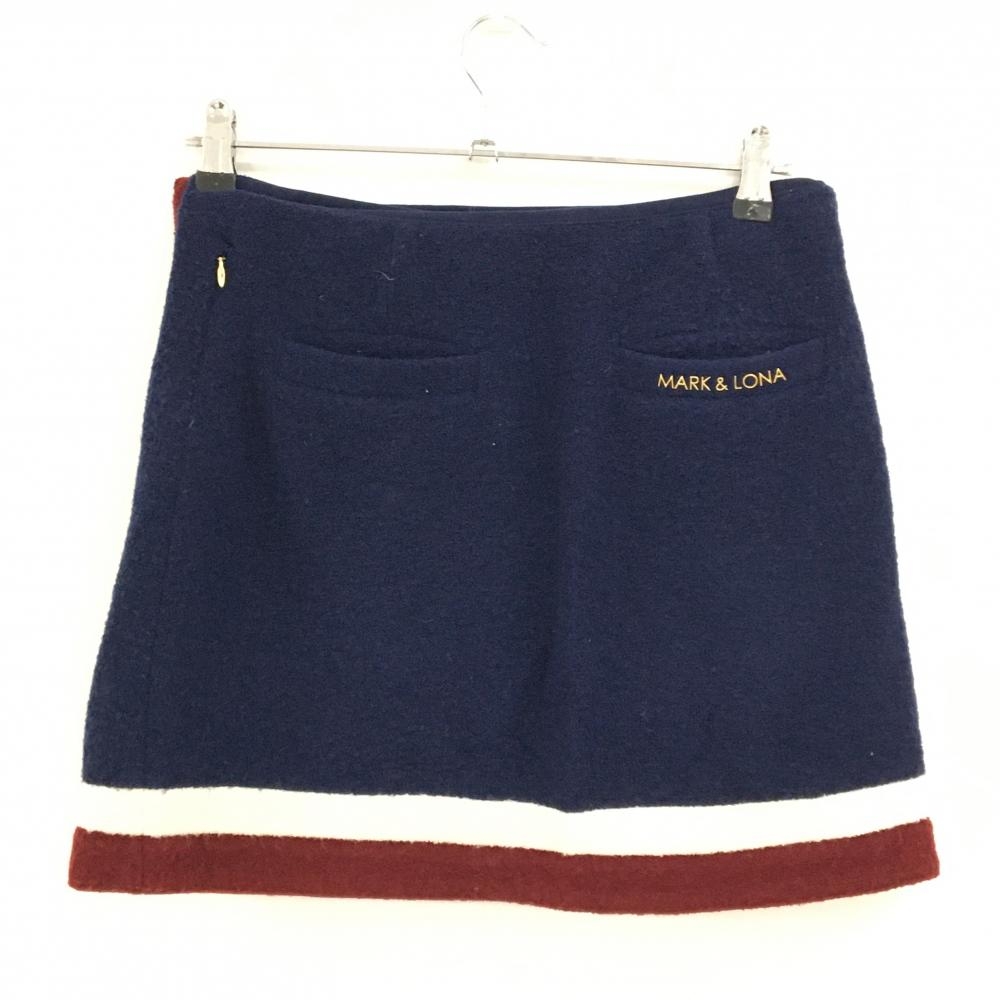 【美品】マークアンドロナ ニットスカート ネイビー×白×ボルドー ウール混 ラップ レディース M ゴルフウェア MARK&LONA
