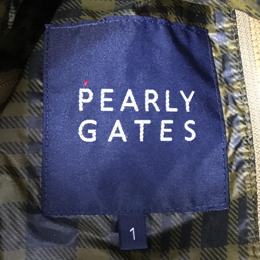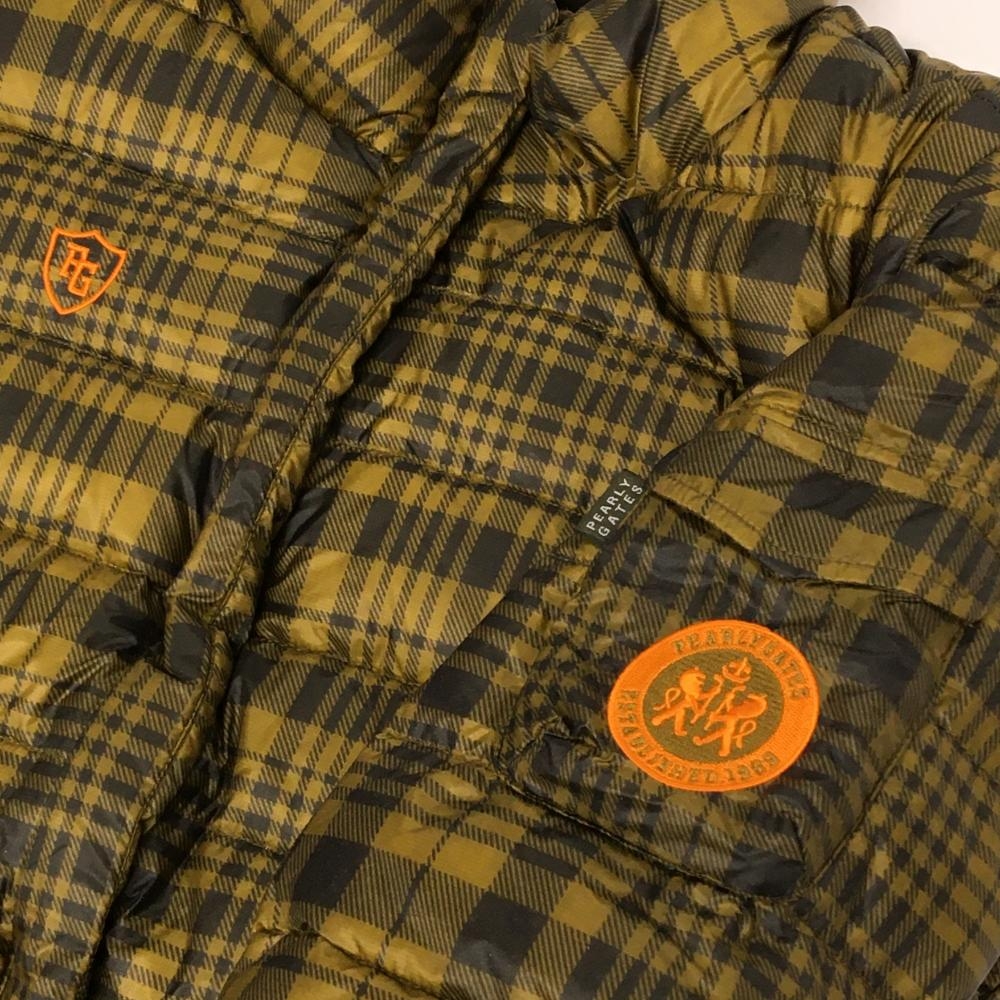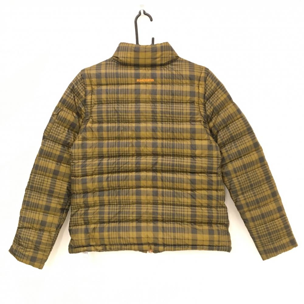【美品】パーリーゲイツ 2WAYダウンジャケット ブラウン×黒 チェック 袖着脱可 収納袋 レディース 1(M) ゴルフウェア PEARLY GATES