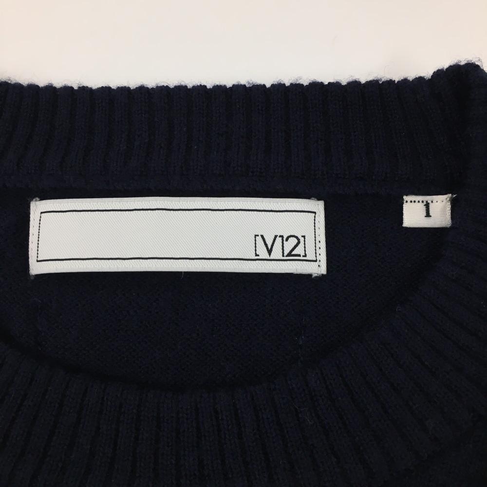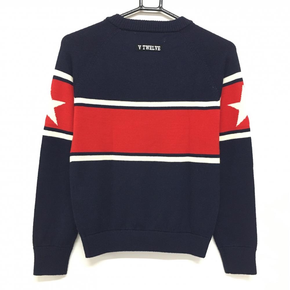 【超美品】V12 セーター ネイビー×レッド 胸元ロゴ ウール100% ニット レディース 1(M) ゴルフウェア V12