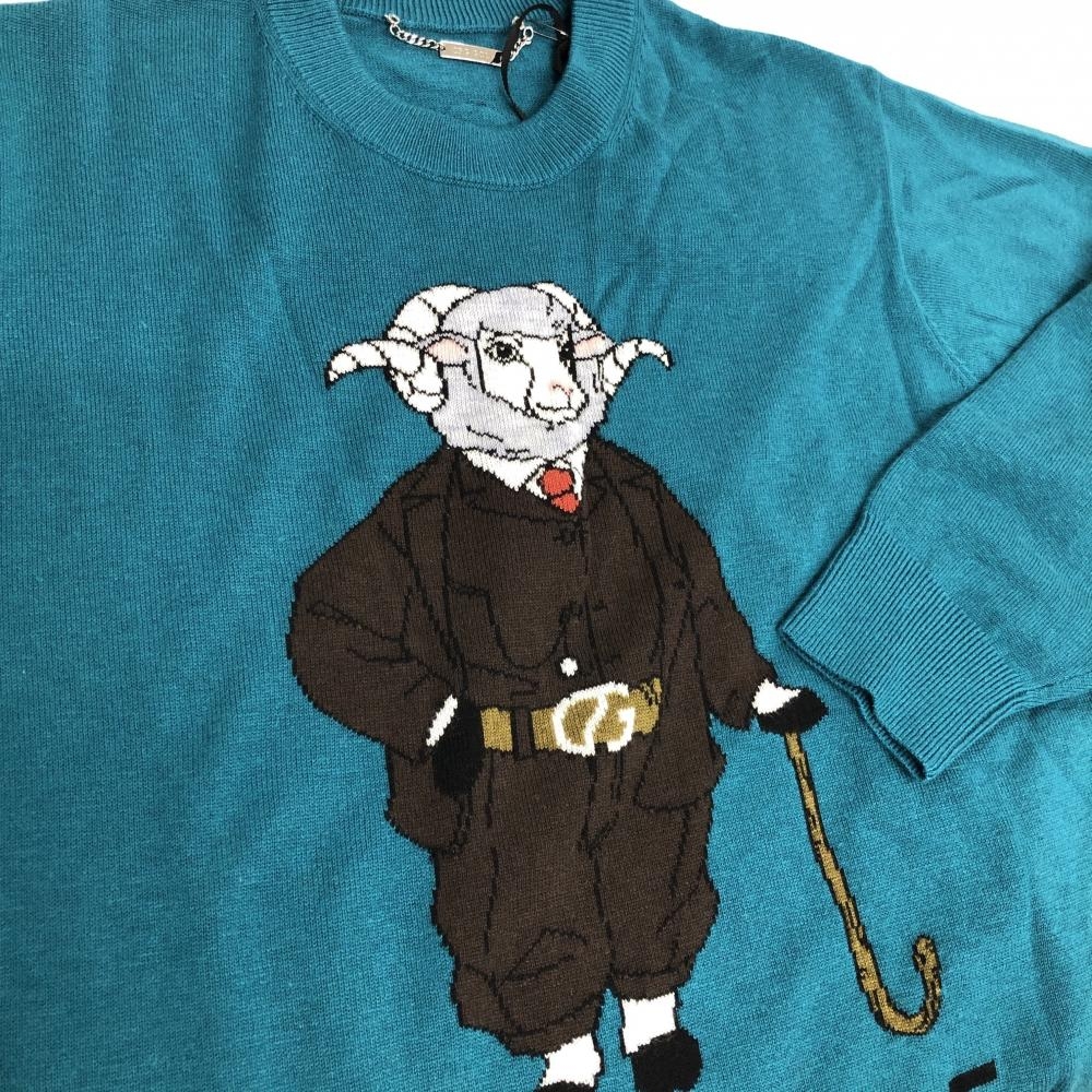 【新品】CPG セーター ブルーグリーン×ダークブラウン 羊柄 ウール50% ニット メンズ 3(L) ゴルフウェア 2024年モデル CPG