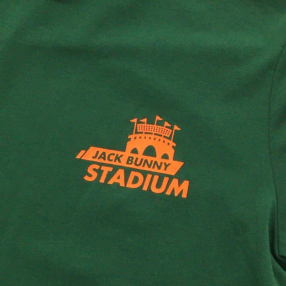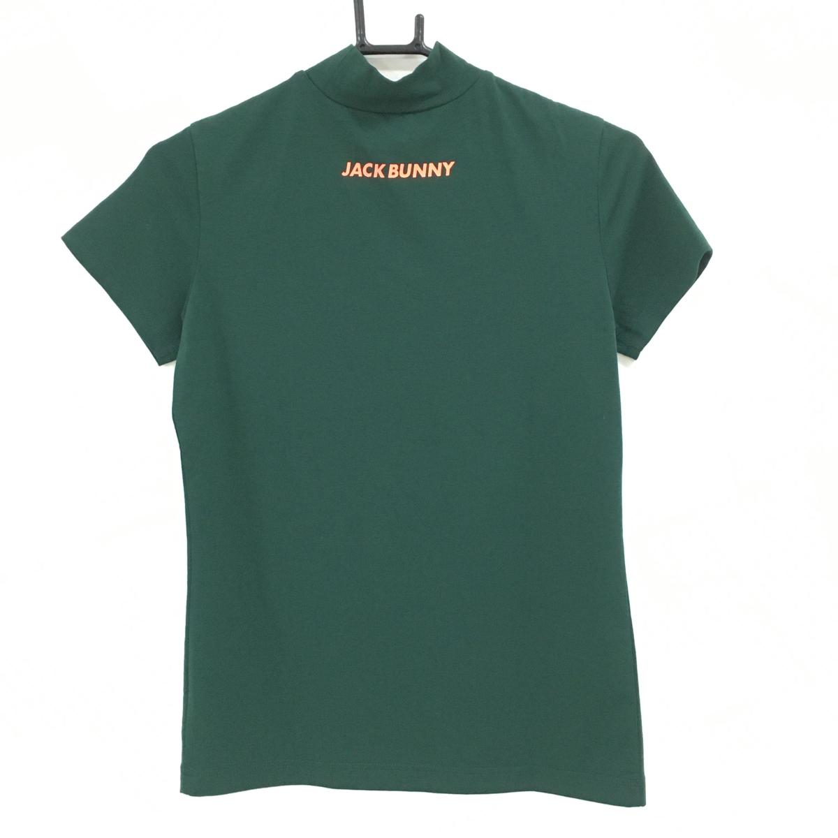 【超美品】ジャックバニー 半袖ハイネックシャツ グリーン×オレンジ ストレッチ ロゴ レディース 0(S) ゴルフウェア Jack Bunny