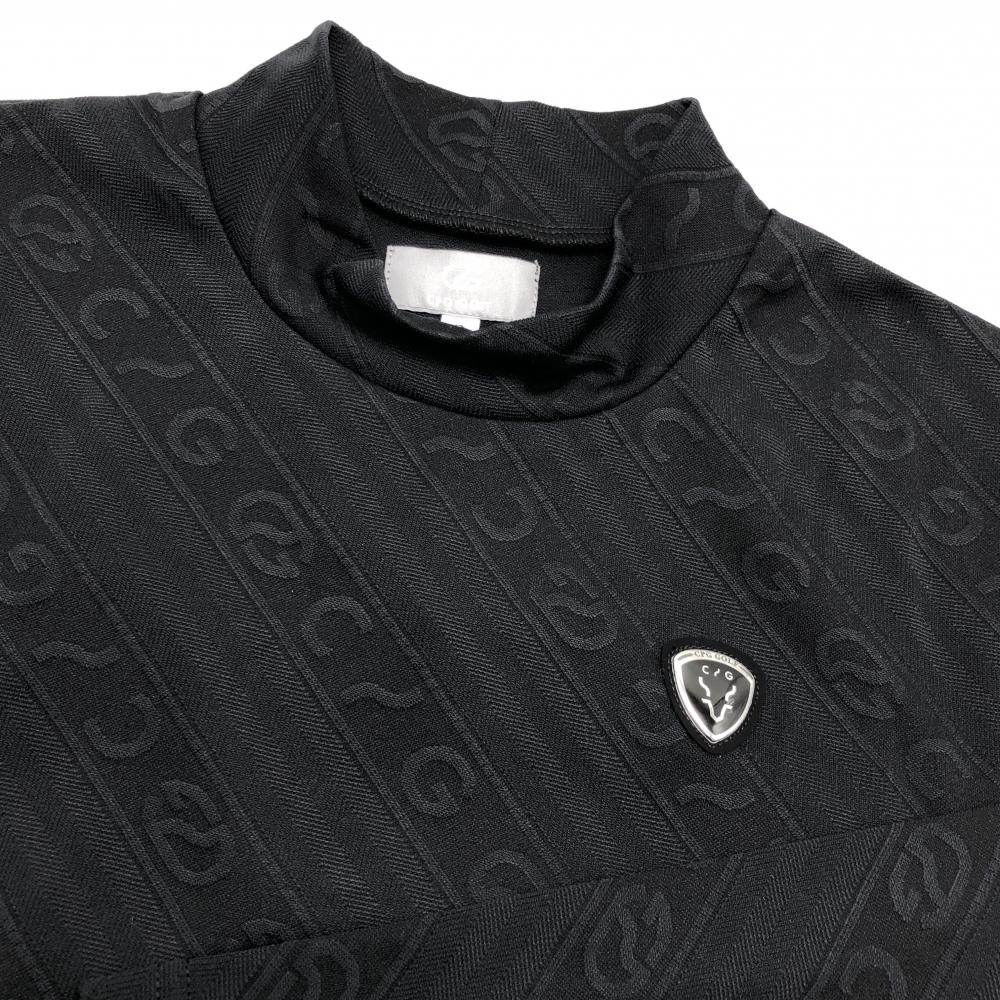 【新品】CPG 長袖ハイネックシャツ 黒 ロゴ地模様 斜めストライプ調 立体ロゴ レディース 2(M) ゴルフウェア 2024年モデル CPG