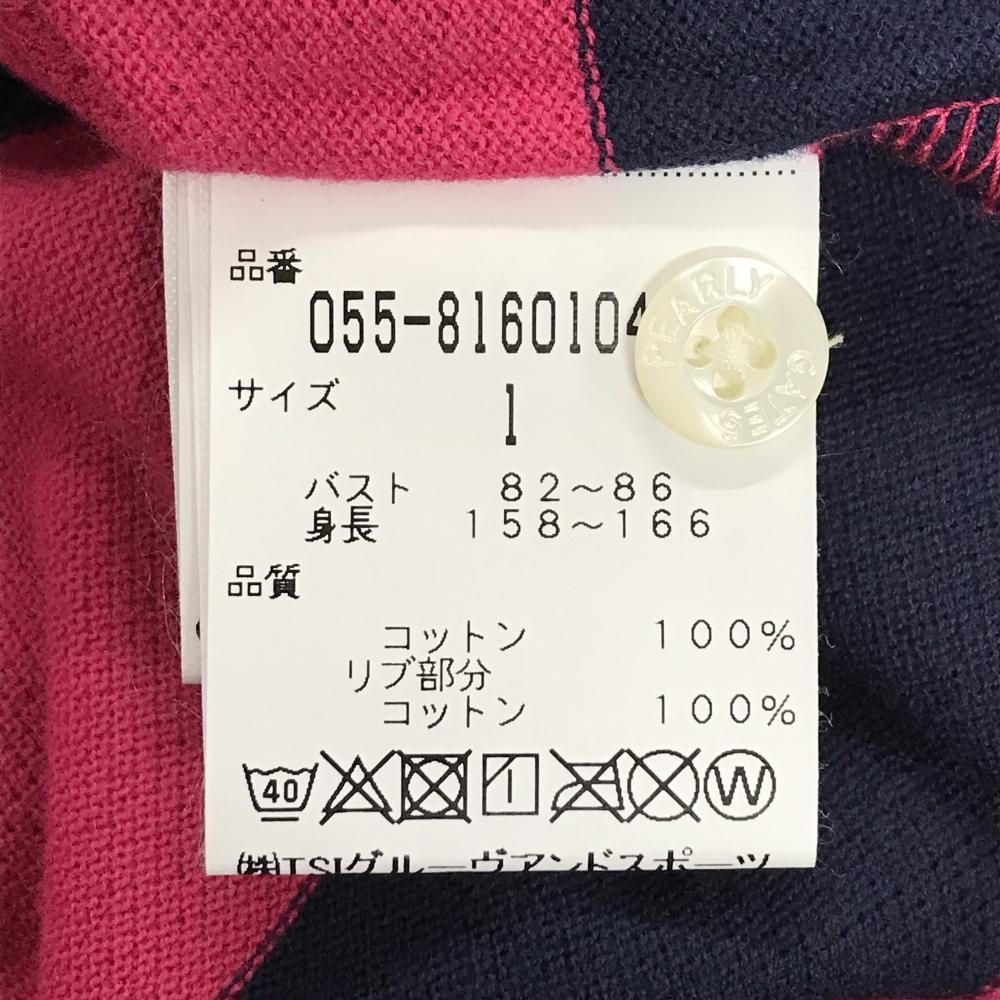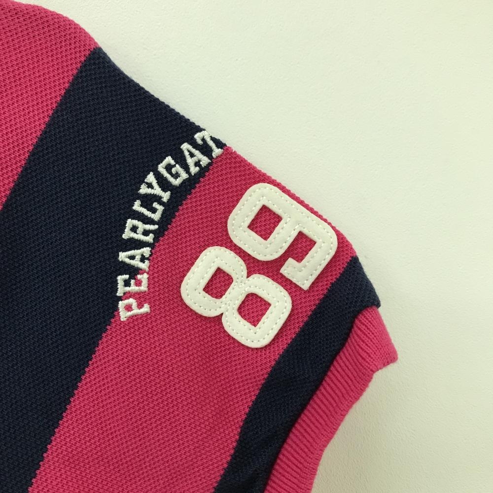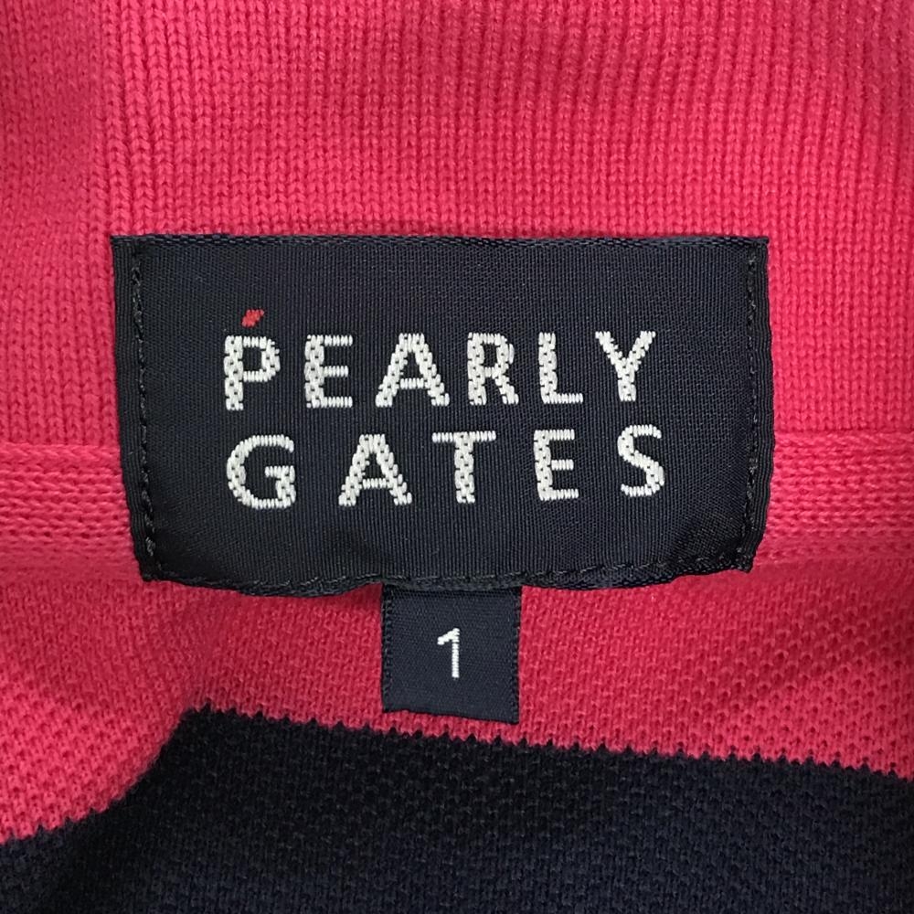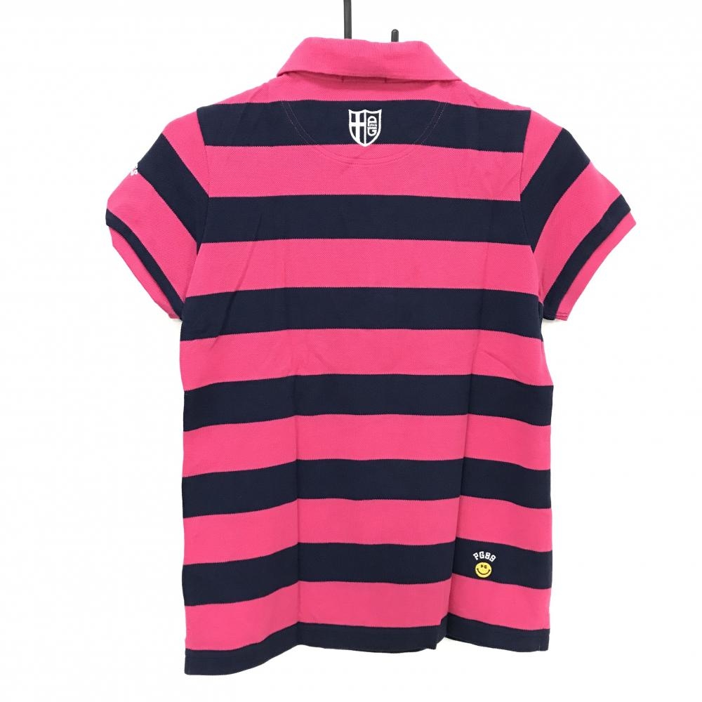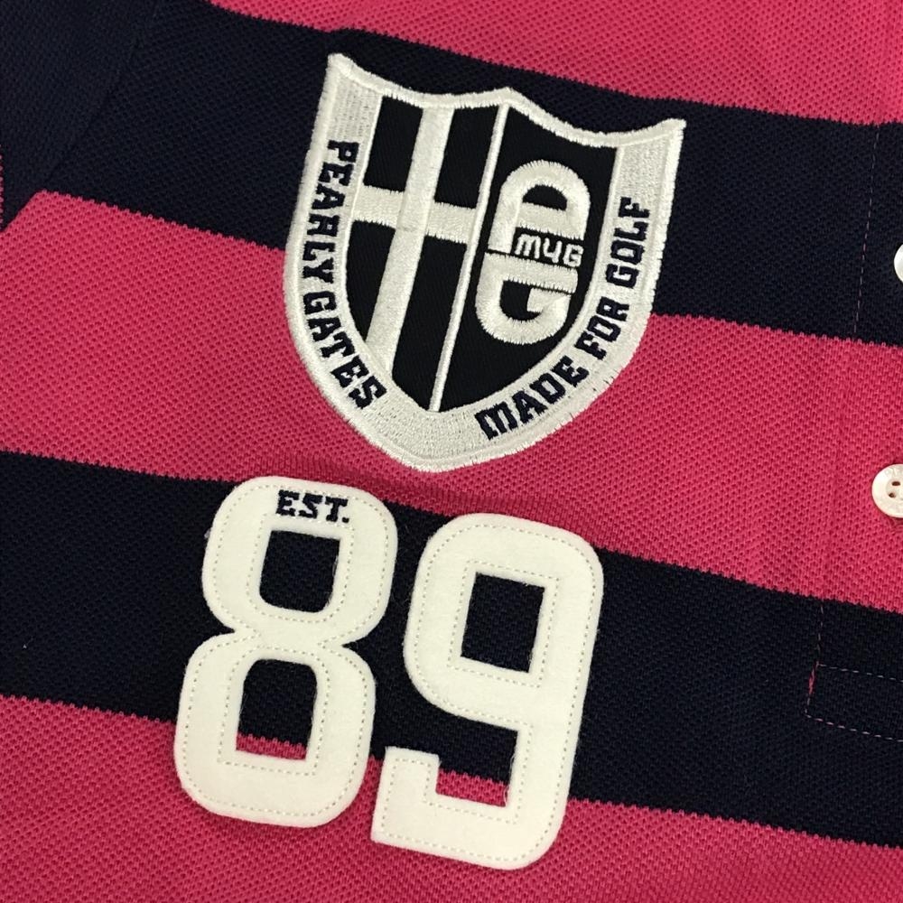 【美品】パーリーゲイツ 半袖ポロシャツ ピンク×ネイビー ボーダー ニコちゃん スマイル レディース 1(M) ゴルフウェア PEARLY GATES