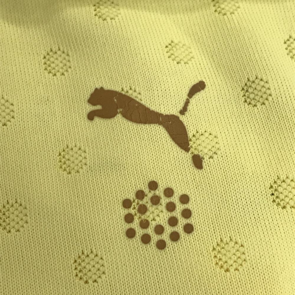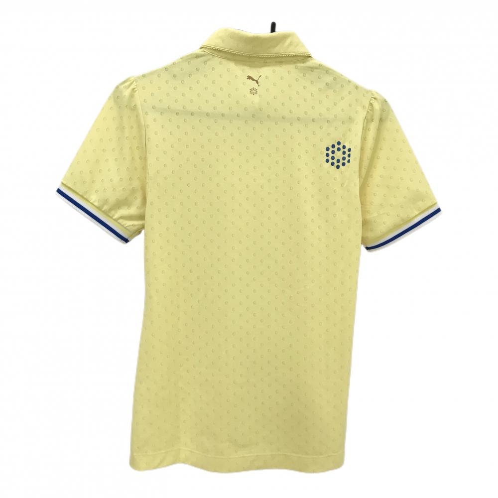 【美品】プーマ 半袖ポロシャツ イエロー ドット柄 袖ライン ロゴ刺しゅう レディース ゴルフウェア PUMA