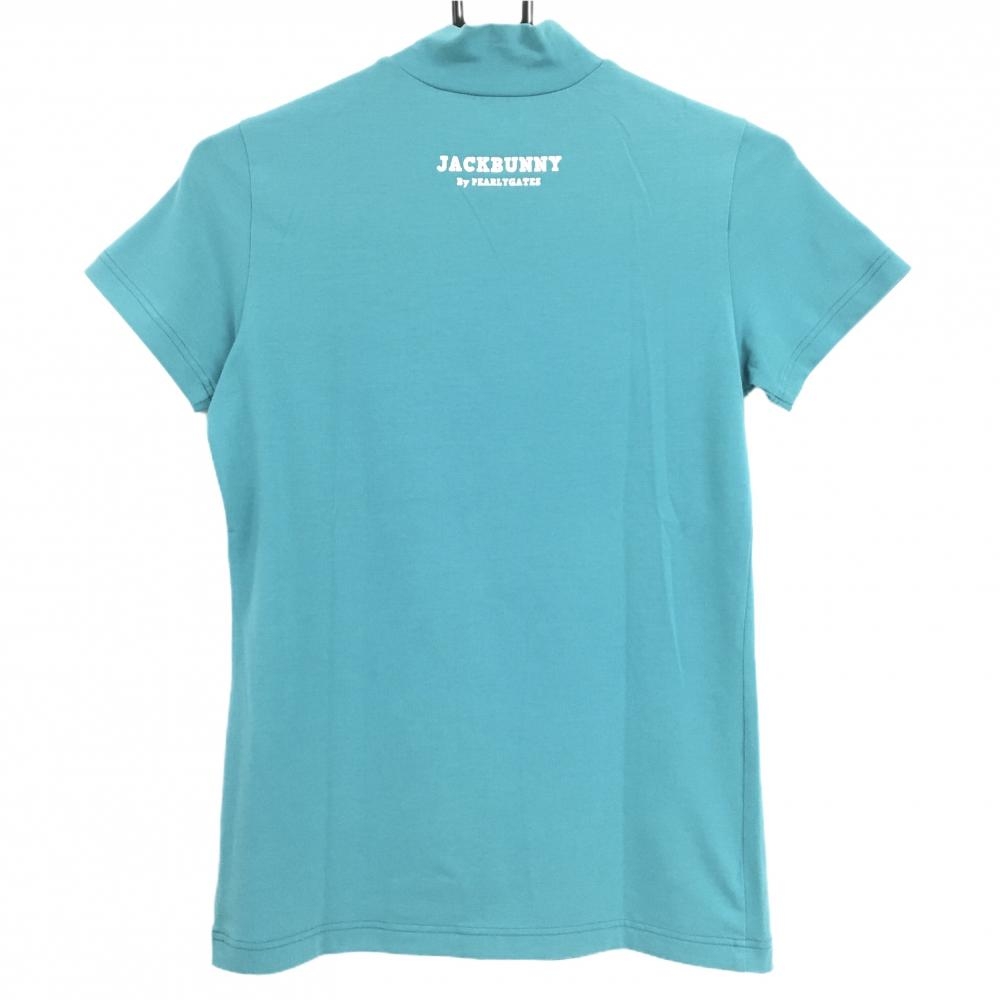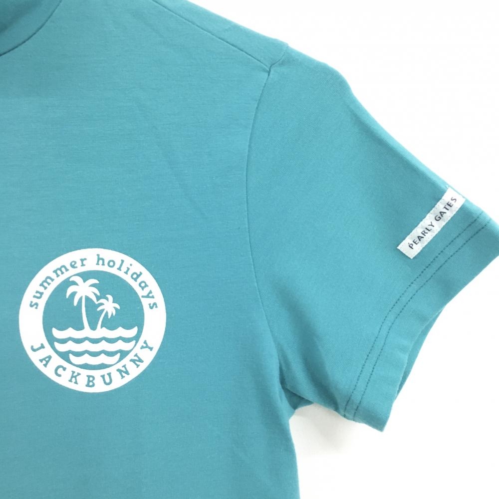 ジャックバニー 半袖ハイネックシャツ グリーン系×白 胸プリント レディース 1(M) ゴルフウェア Jack Bunny