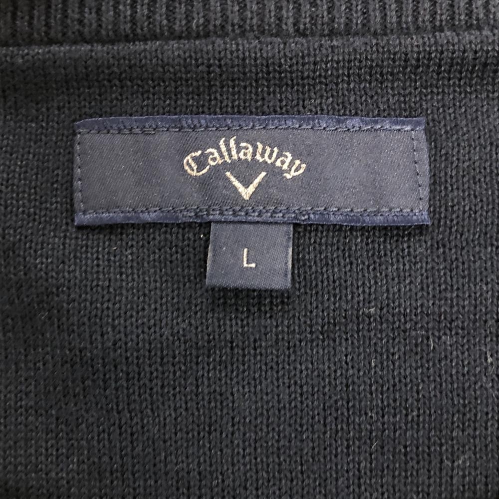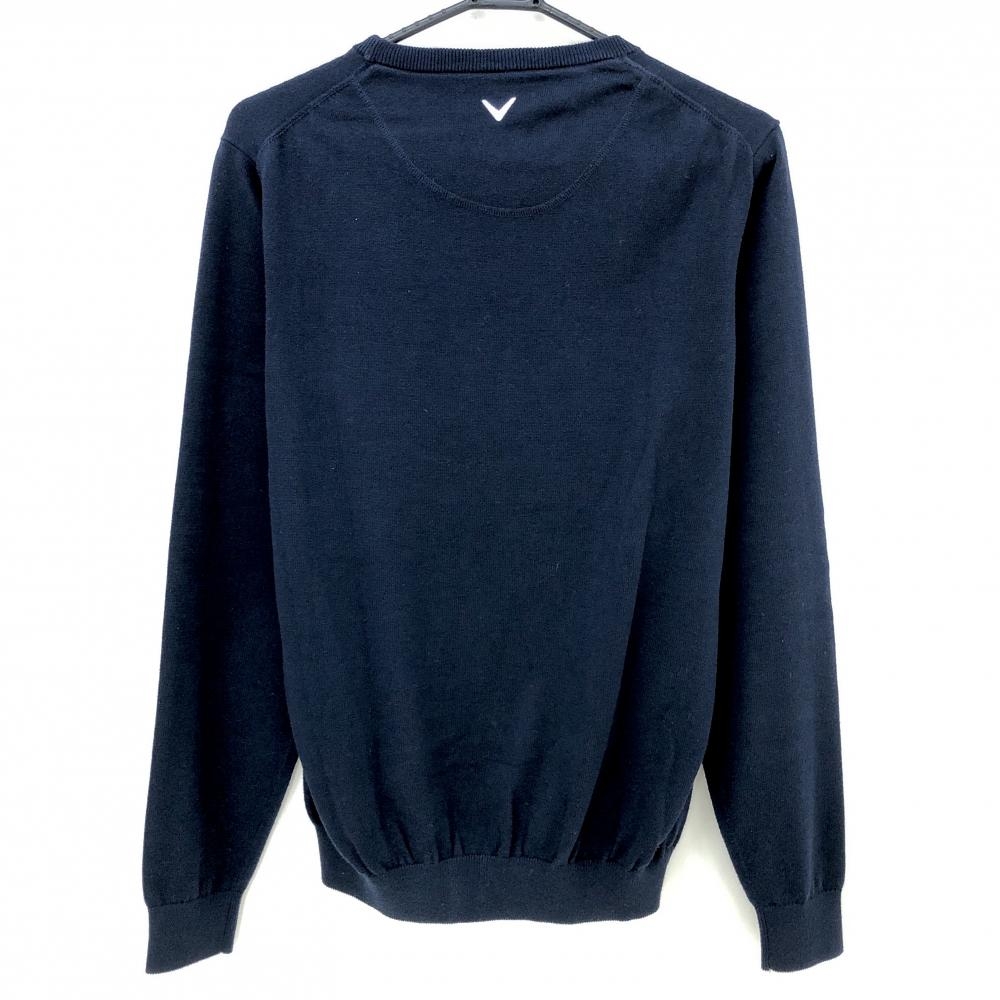 【美品】キャロウェイ セーター ネイビー×白 胸元ビッグロゴ コットン混 ニット メンズ L ゴルフウェア Callaway