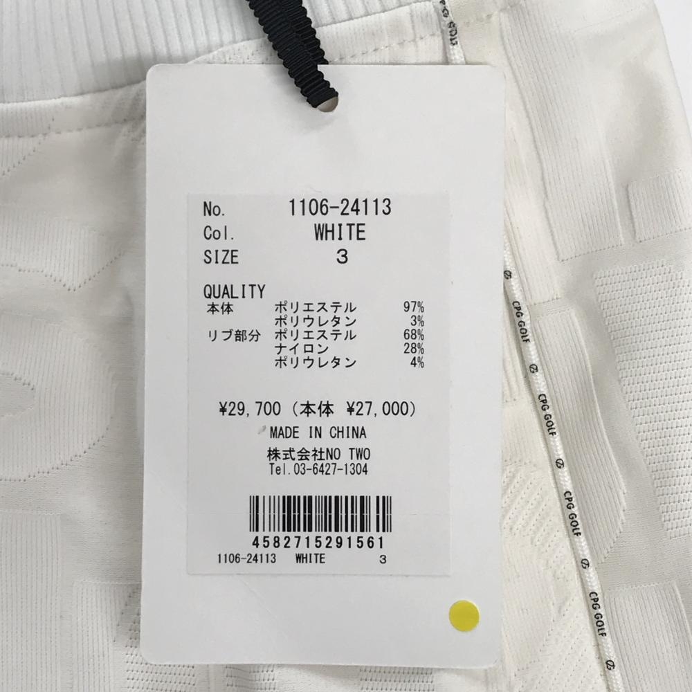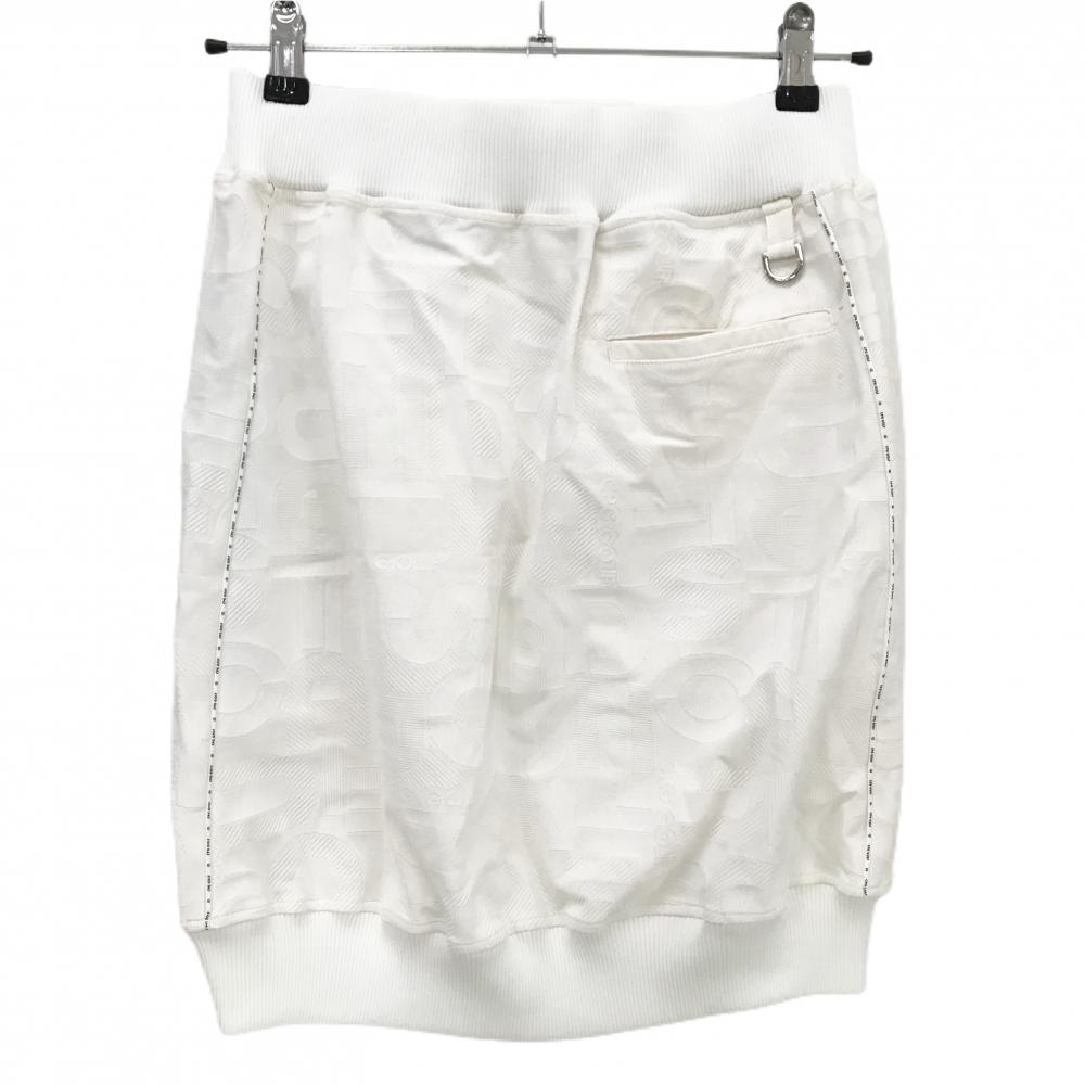 【新品】CPG スカート 白 英字地模様 サイドロゴライン ウエストゴム 調節紐 レディース 3(L) ゴルフウェア 2024年モデル CPG