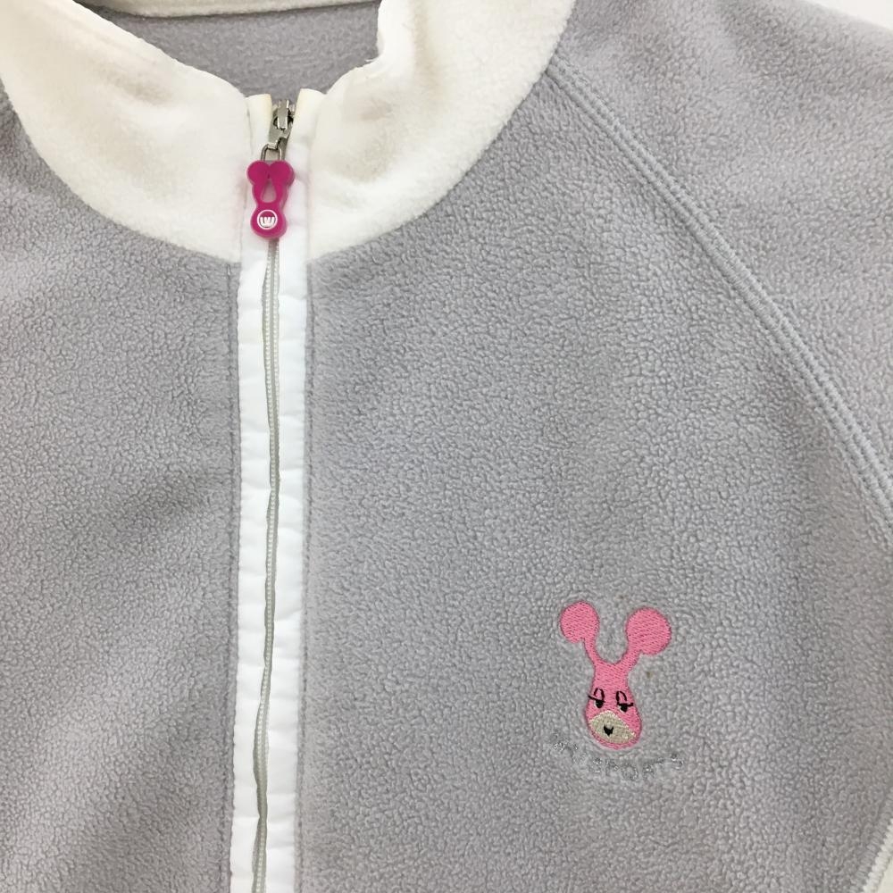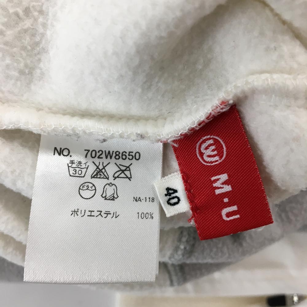 MUスポーツ フリースジャケット 白×ライトグレー 袖口ジップ 異素材 レディース 40(M) ゴルフウェア M・U SPORTS