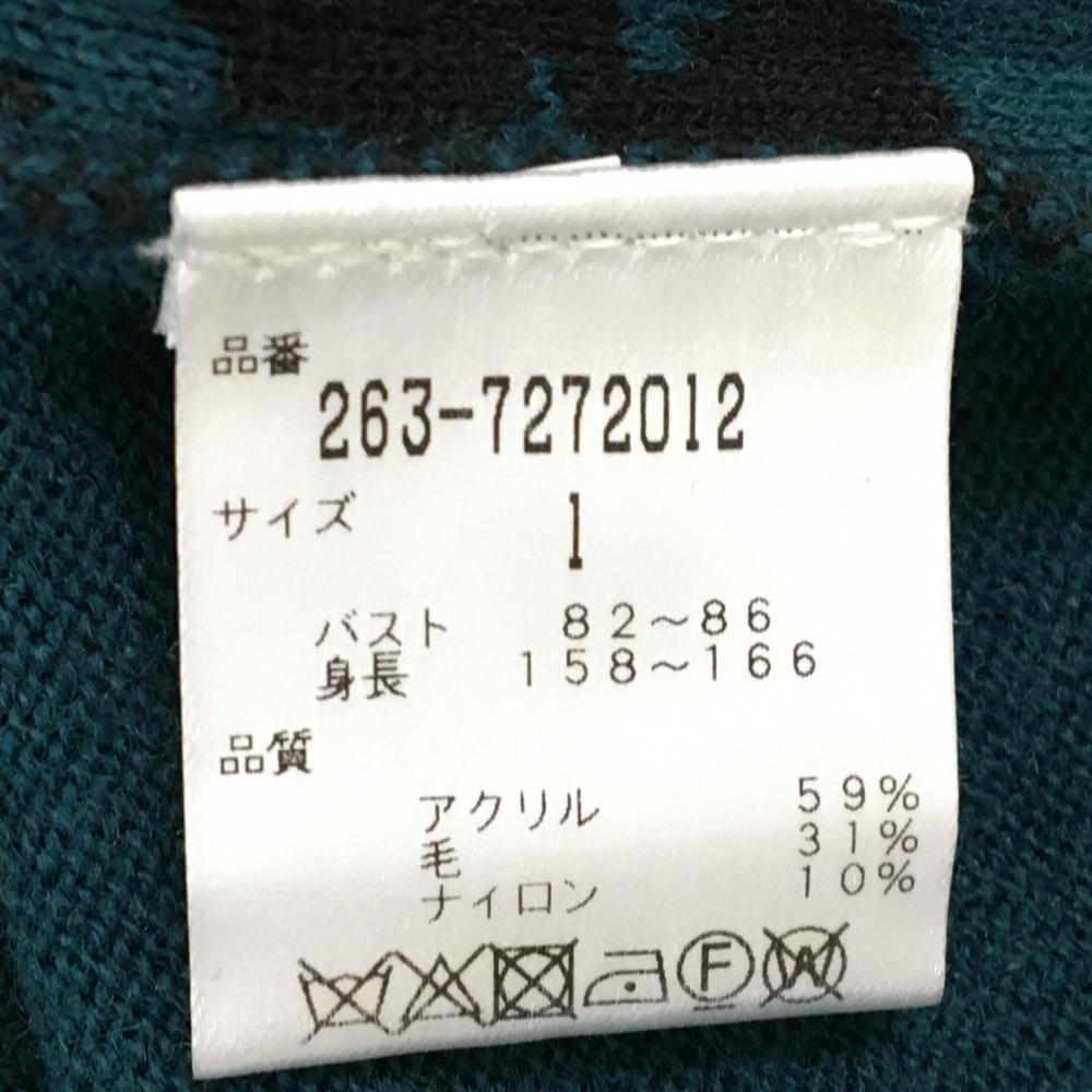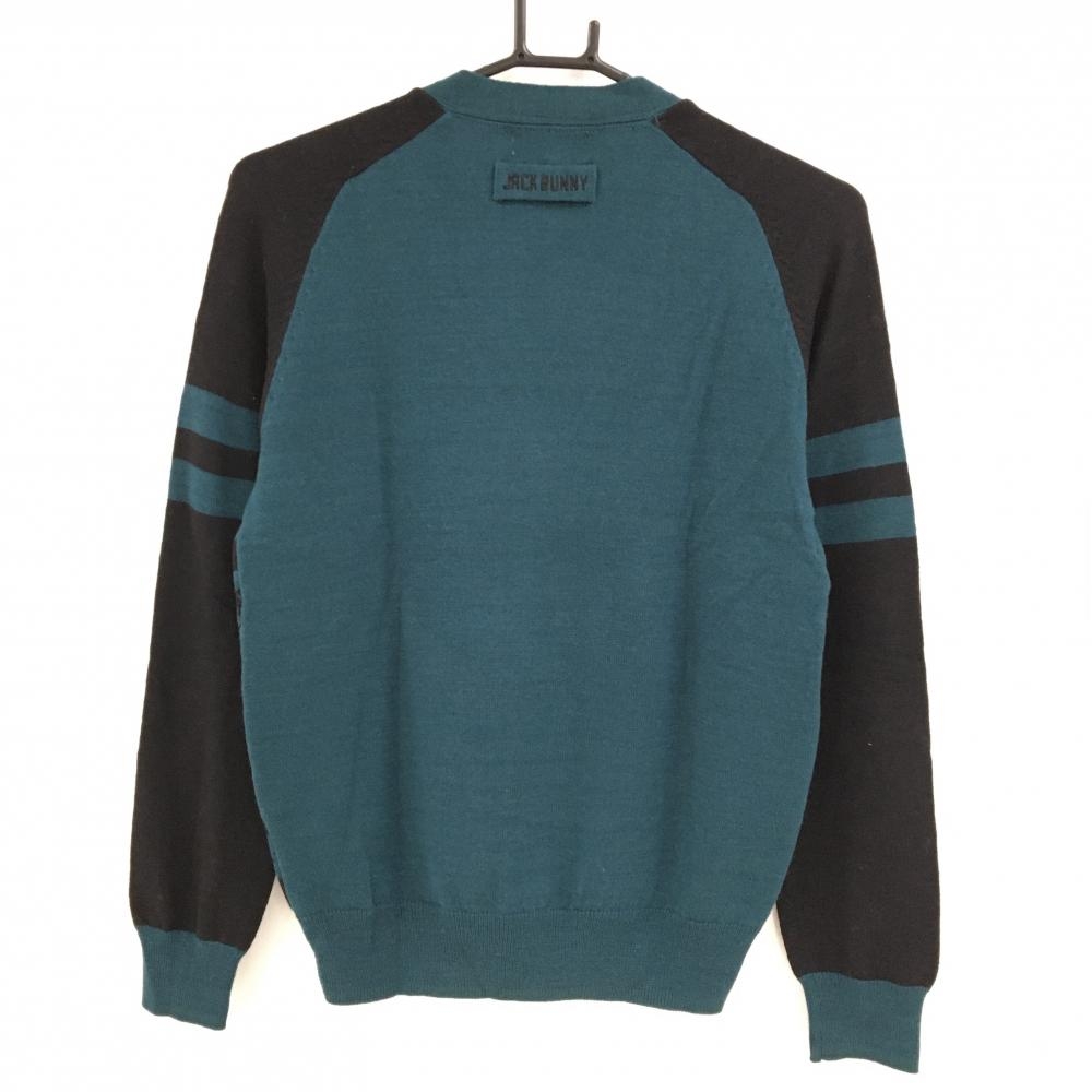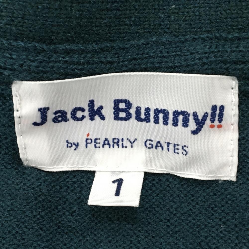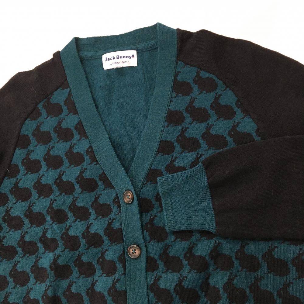 【超美品】ジャックバニー カーディガン ブルーグリーン×黒 前ウサギ柄 ウール混 ニット レディース 1(M) ゴルフウェア Jack Bunny