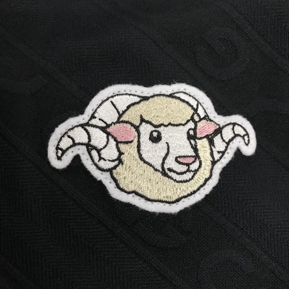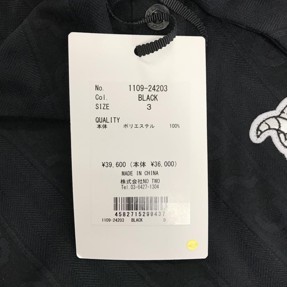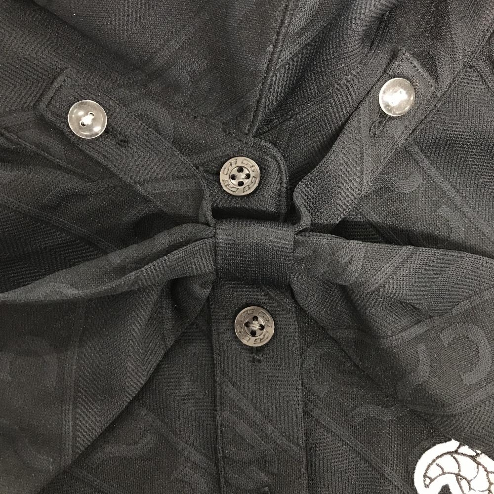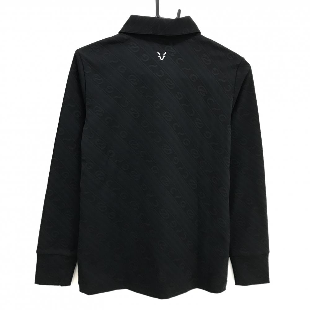 【新品】CPG 長袖ポロシャツ 黒 ロゴ地模様 斜めストライプ調 ヒツジワッペン レディース 3(L) ゴルフウェア 2024年モデル CPG