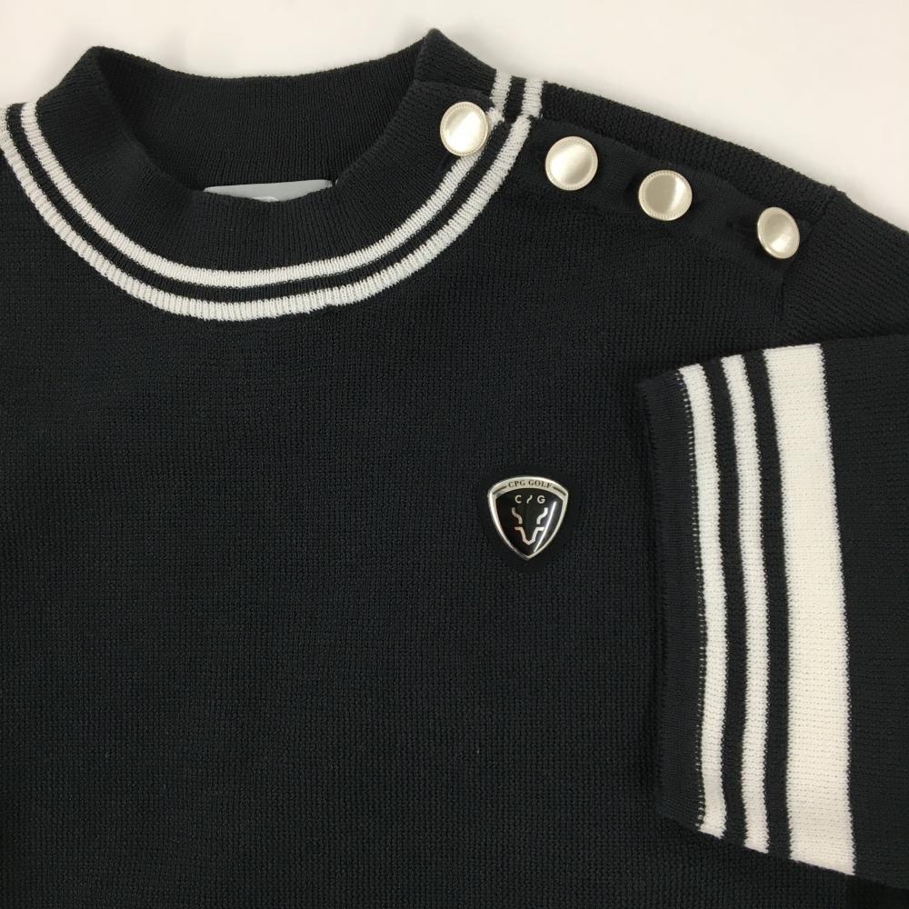 【新品】CPG 半袖ニットワンピース 黒×白 肩ボタン 立体ロゴ レディース 2(M) ゴルフウェア 2024年モデル CPG