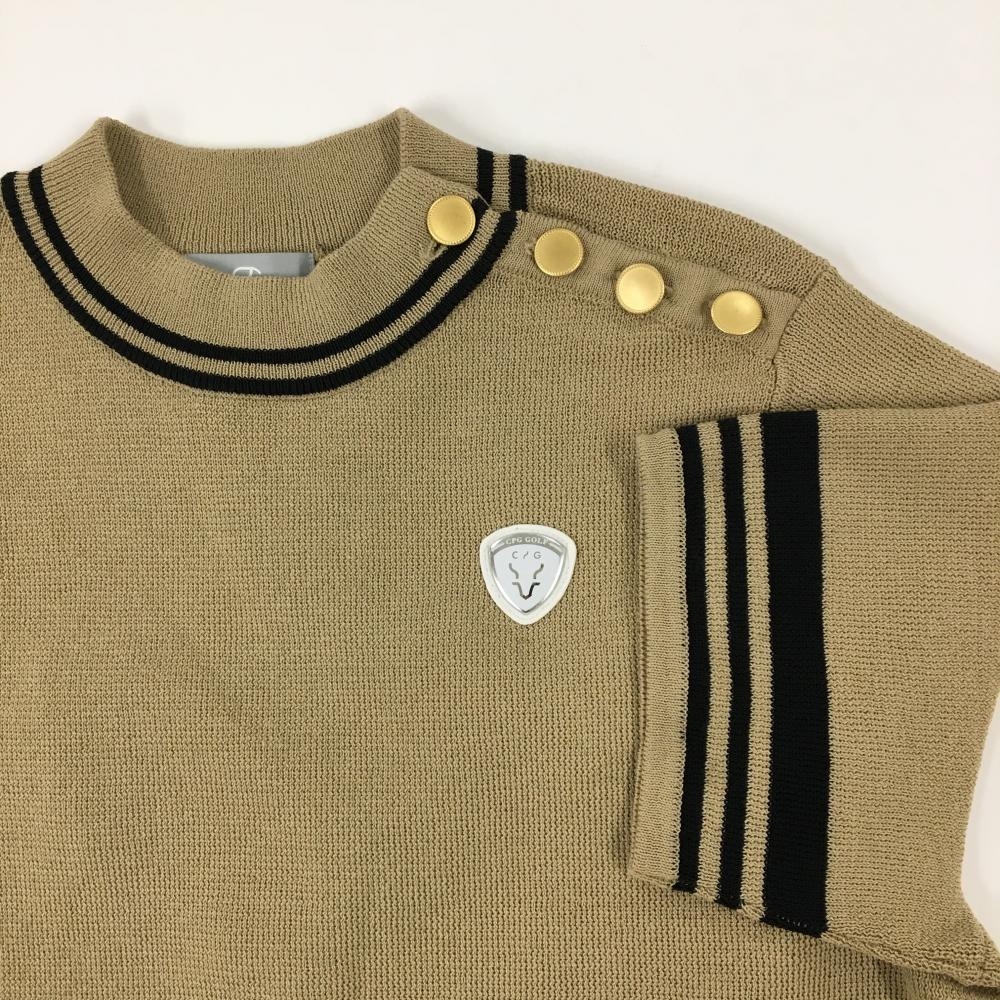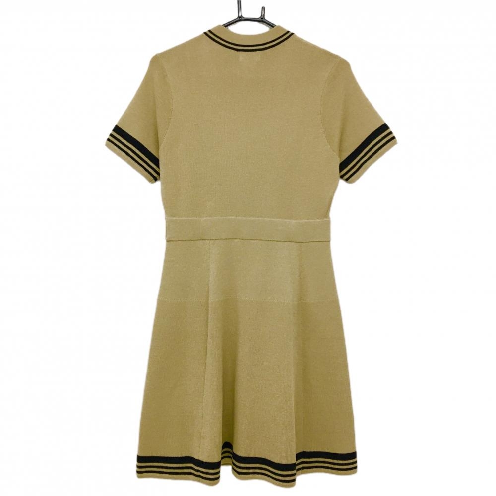 【新品】CPG 半袖ニットワンピース ベージュ×黒 肩ボタン 立体ロゴ レディース 2(M) ゴルフウェア 2024年モデル CPG