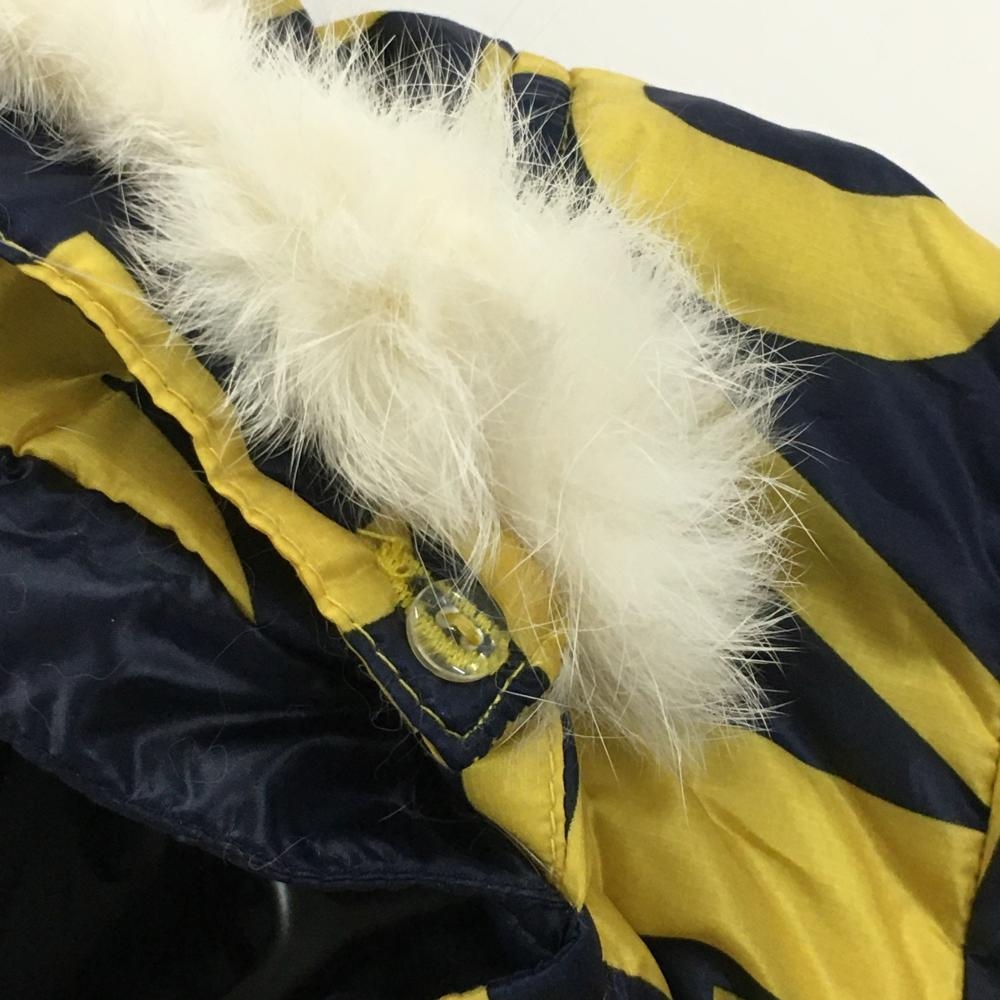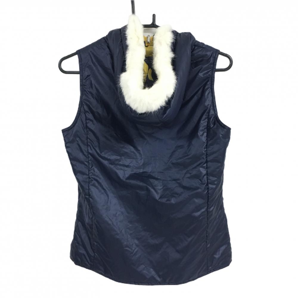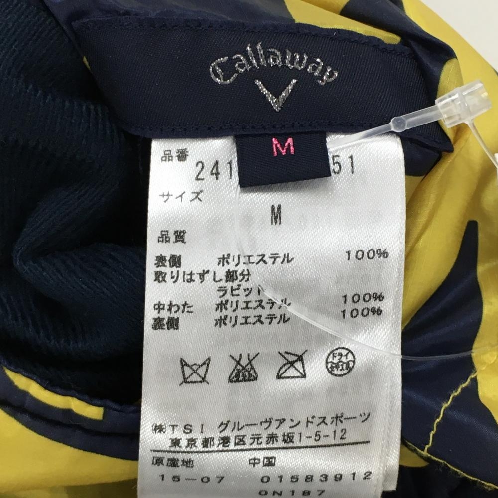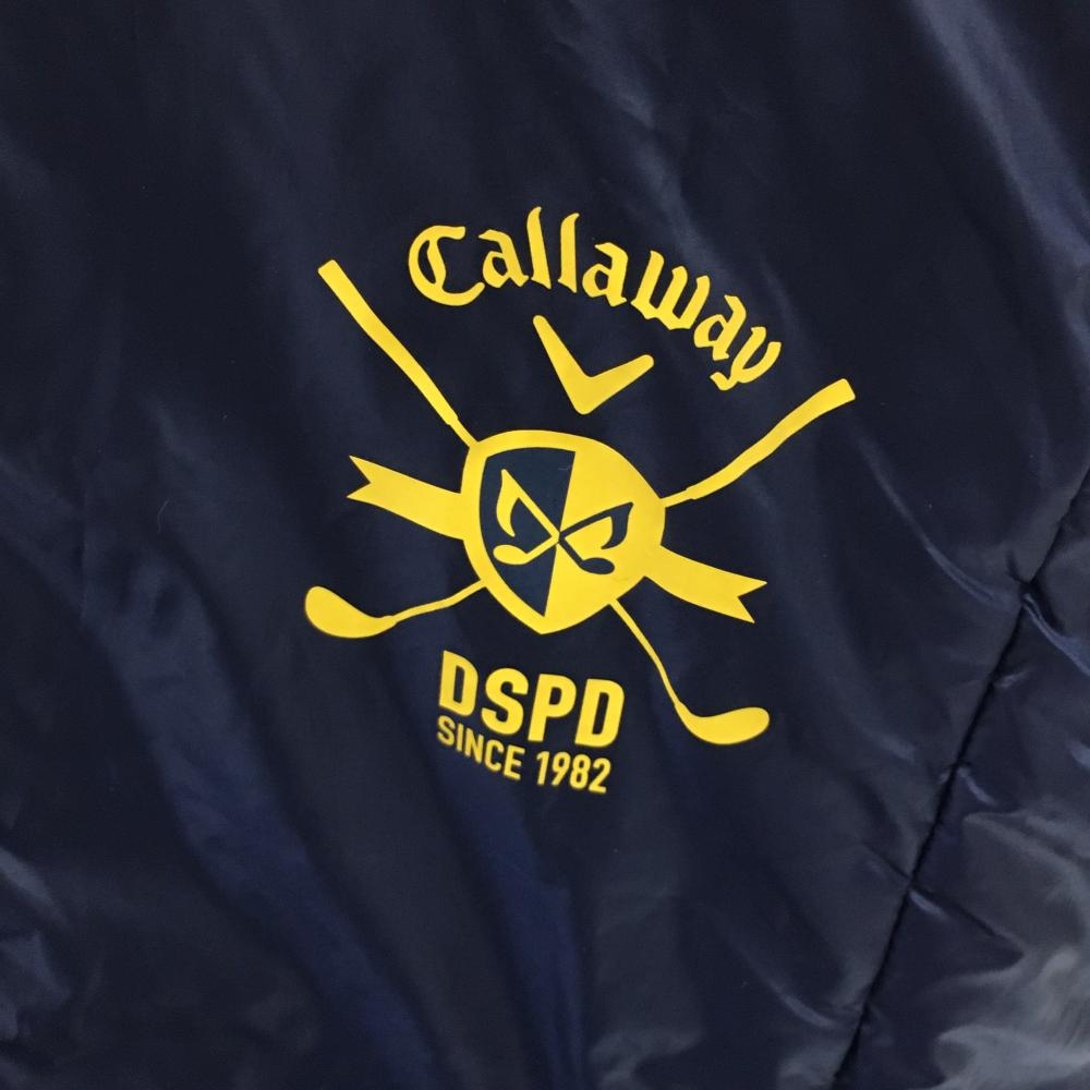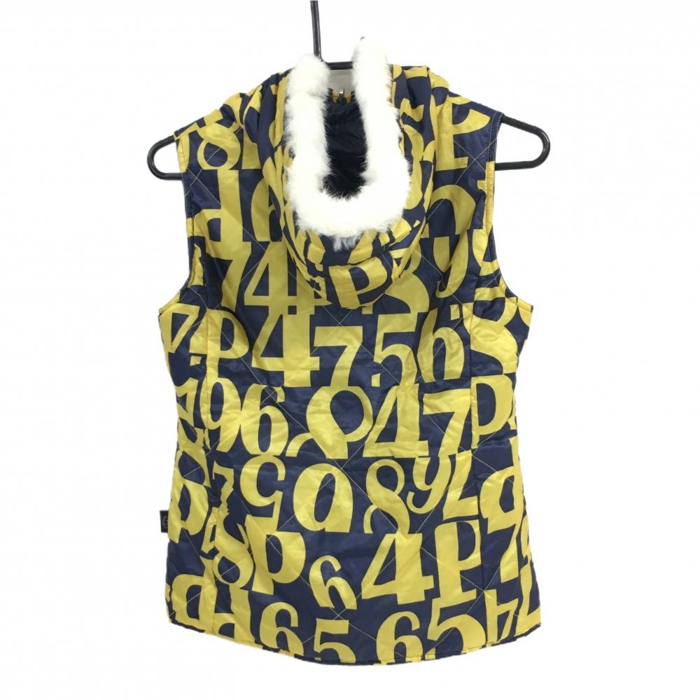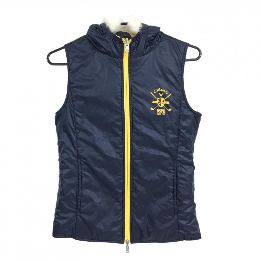 【超美品】キャロウェイ 中綿リバーシブルベスト ネイビー×イエロー 数字柄 フード付 ファー着脱可 レディース M ゴルフウェア Callaway