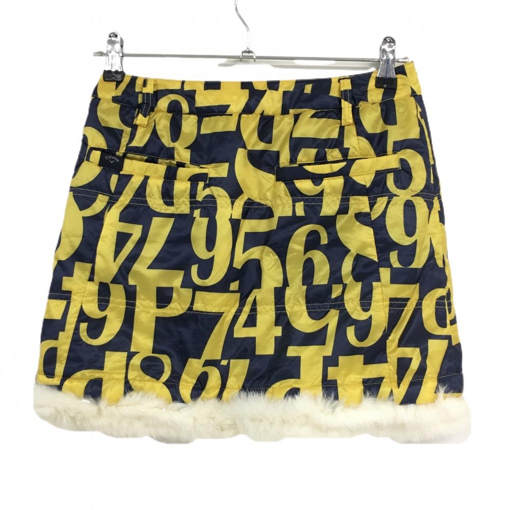 【超美品】キャロウェイ 中綿スカート ネイビー×イエロー 数字柄 薄手 ファー着脱可 レディース S ゴルフウェア Callaway