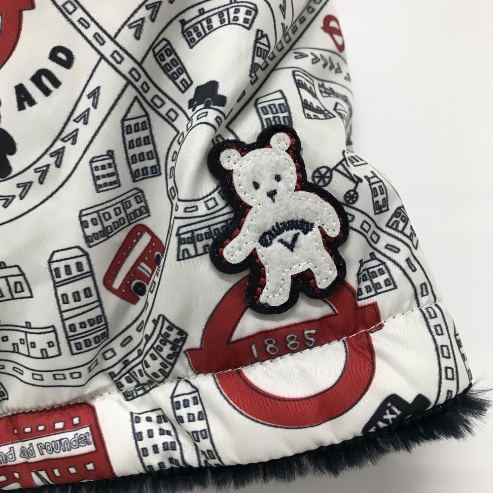 【超美品】キャロウェイ 中綿リバーシブルスカート ネイビー×レッド ファー 裏総柄 ベアワッペン レディース SS ゴルフウェア Callaway