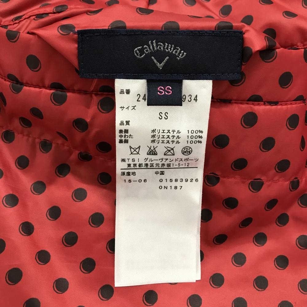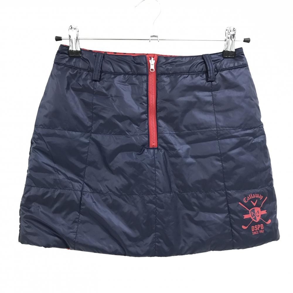 【超美品】キャロウェイ 中綿リバーシブルスカート レッド×黒 ドット柄 裏ネイビー ロゴワッペン レディース SS ゴルフウェア Callaway