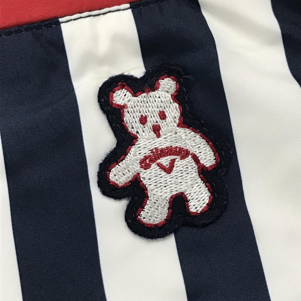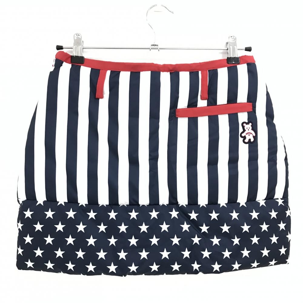 【美品】キャロウェイ ダウンスカート 白×ネイビー ストライプ 星条旗 ベアワッペン ダウン90% レディース S ゴルフウェア Callaway