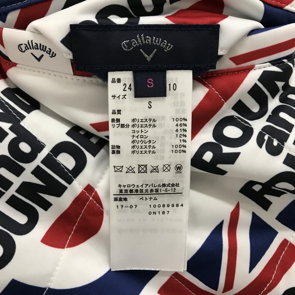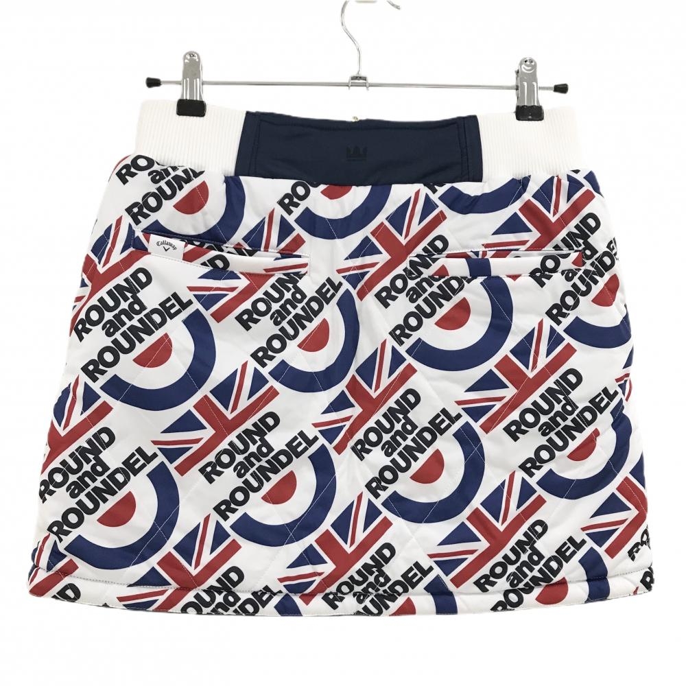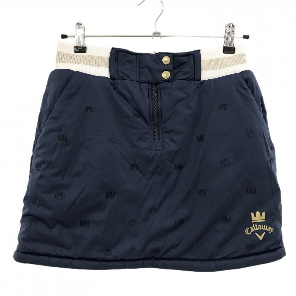【超美品】キャロウェイ 中綿リバーシブルスカート 白×ネイビー 総柄 キルティング 裏地模様 レディース S ゴルフウェア Callaway