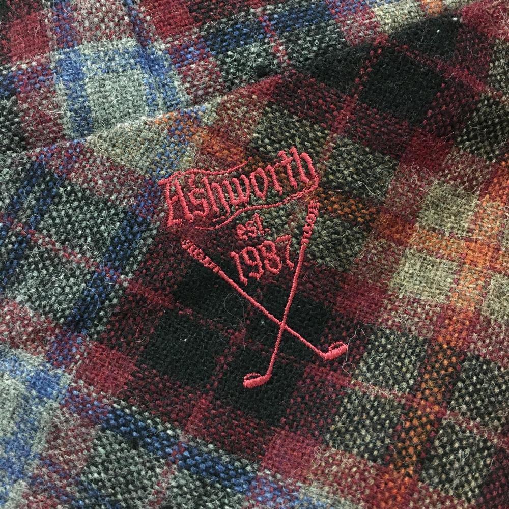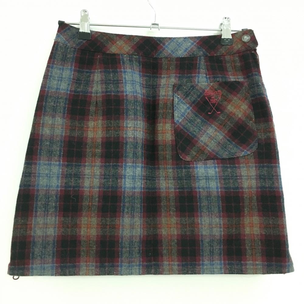 【美品】アシュワース リバーシブルスカート グレー×ボルドー×ブルー チェック 裏キルティング レディース S ゴルフウェア ASHWORTH