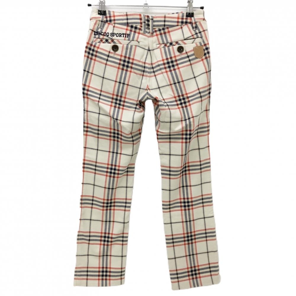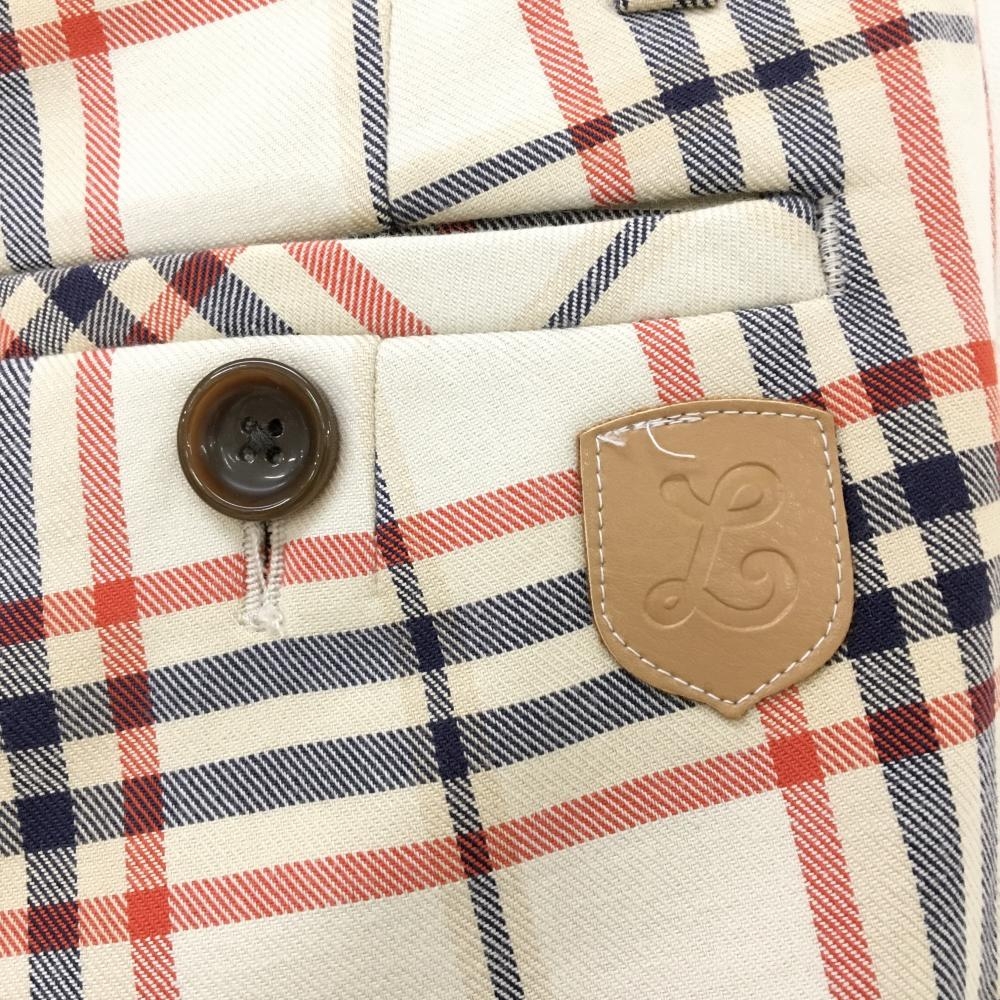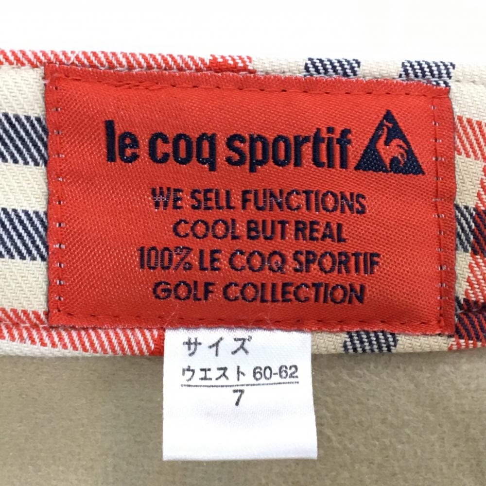 【超美品】ルコックゴルフ パンツ ベージュ×レッド×ネイビー チェック 裏起毛 ストレッチ レディース 7 ゴルフウェア le coq sportif