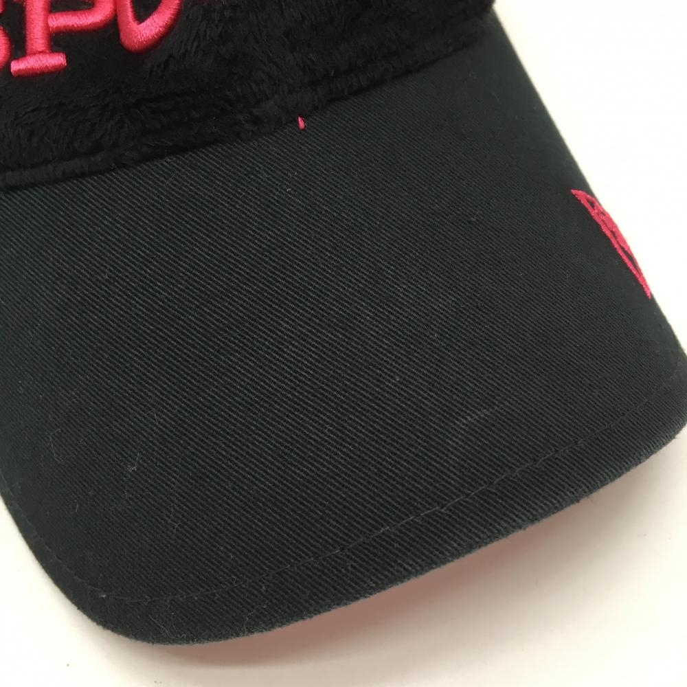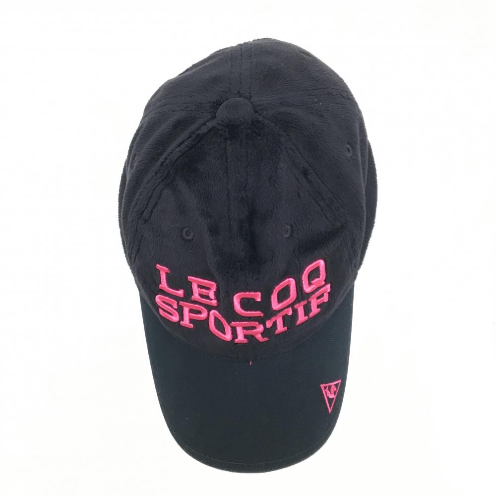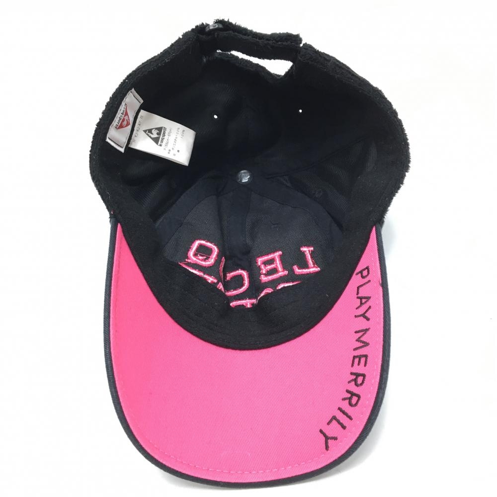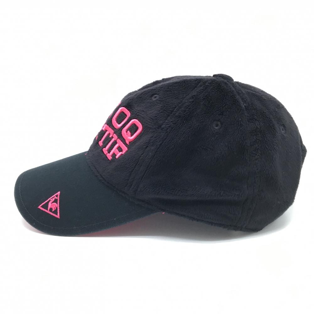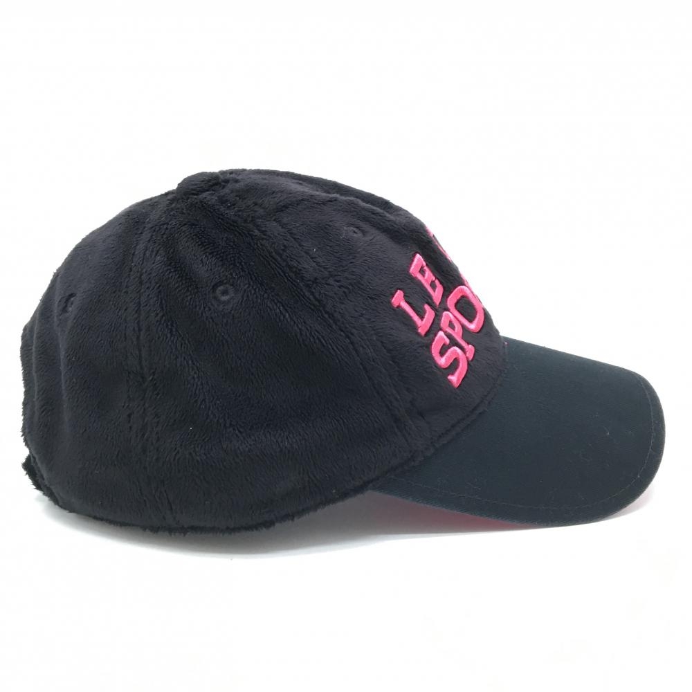 【美品】ルコック ボアキャップ 黒×ピンク ロゴ刺しゅう レディース F(55cm-57cm) ゴルフウェア le coq sportif