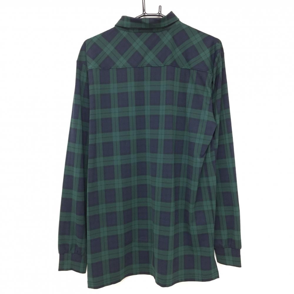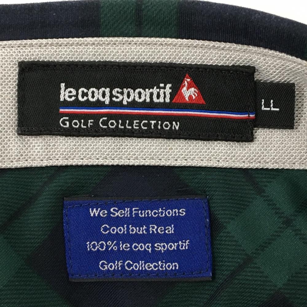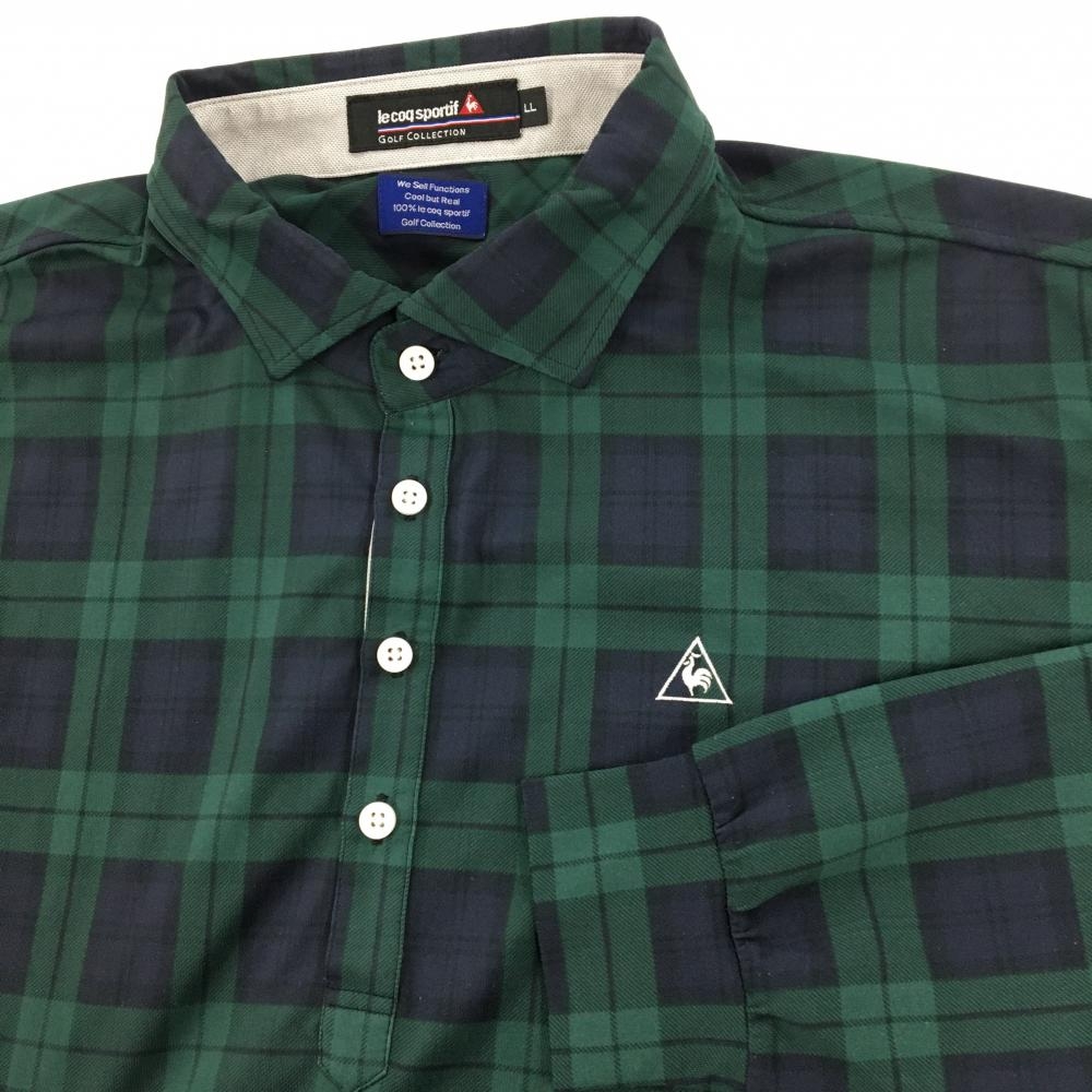 【美品】ルコックゴルフ 長袖ポロシャツ グリーン×ネイビー チェック柄 メンズ LL ゴルフウェア le coq sportif