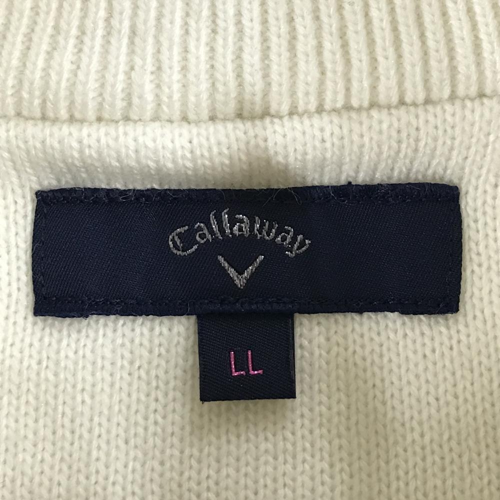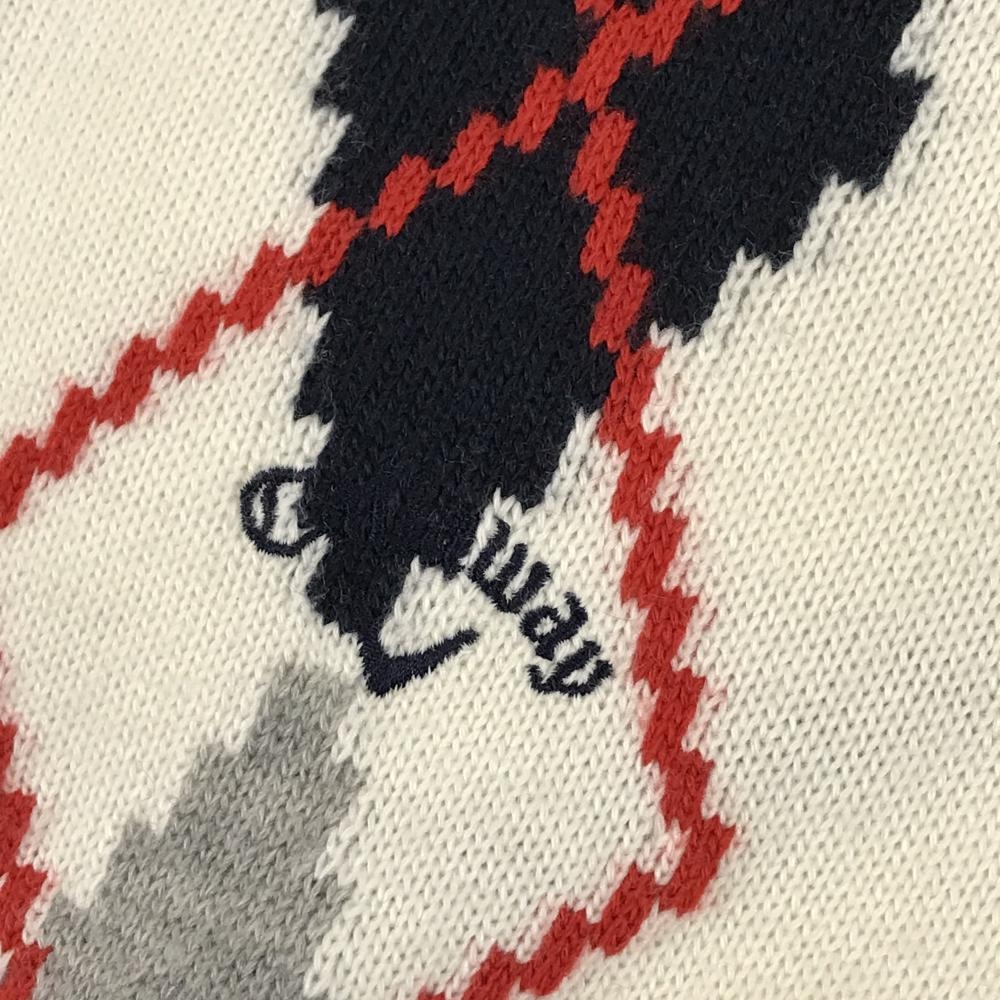 キャロウェイ ニットジャケット 白×ネイビー アーガイル柄 ロゴ刺しゅう ウール混 レディース LL ゴルフウェア Callaway