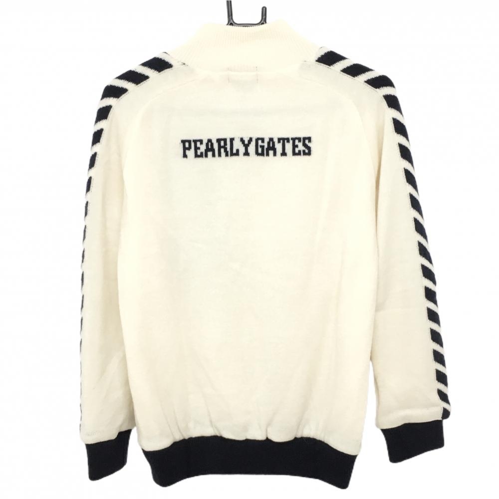 【美品】パーリーゲイツ ニットジャケット アイボリー×ネイビー ダブルジップ レディース 0(S) ゴルフウェア PEARLY GATES