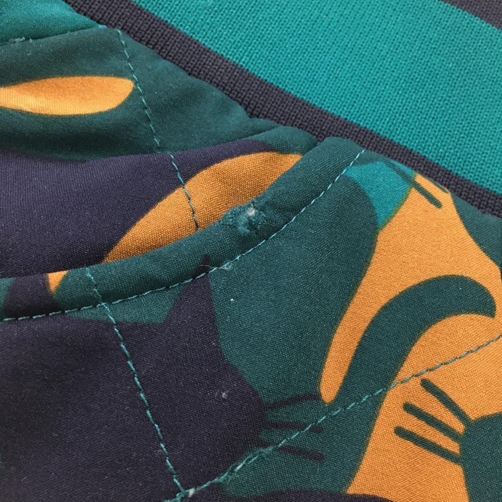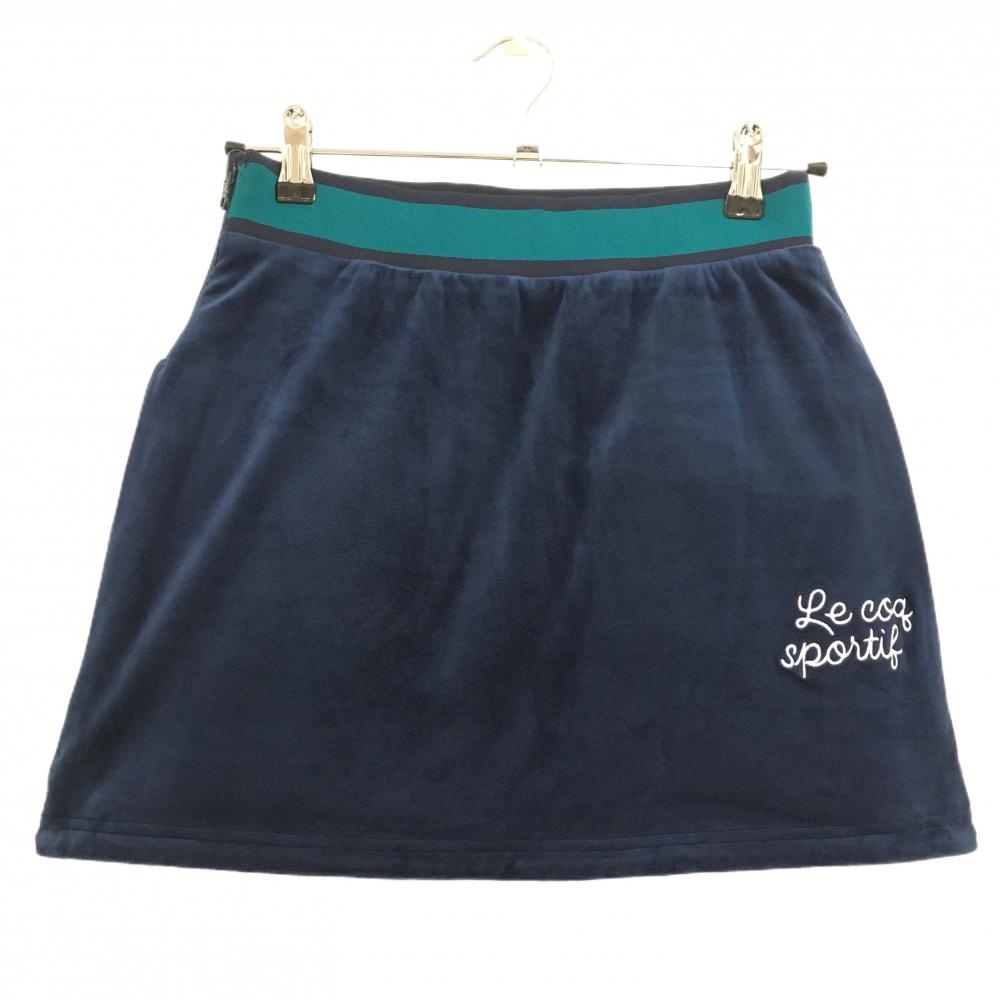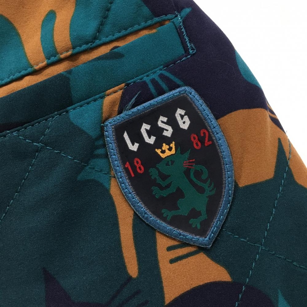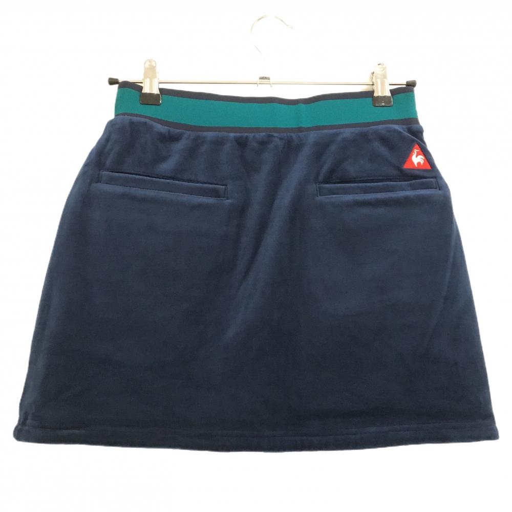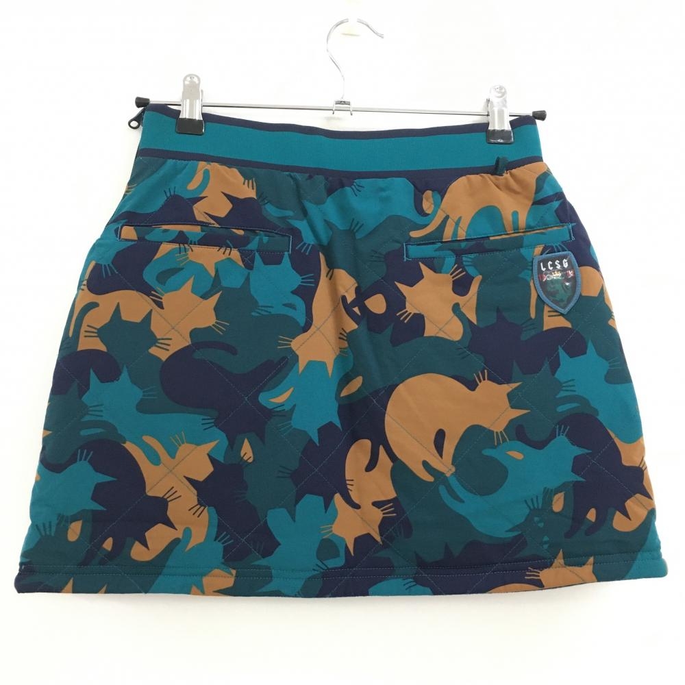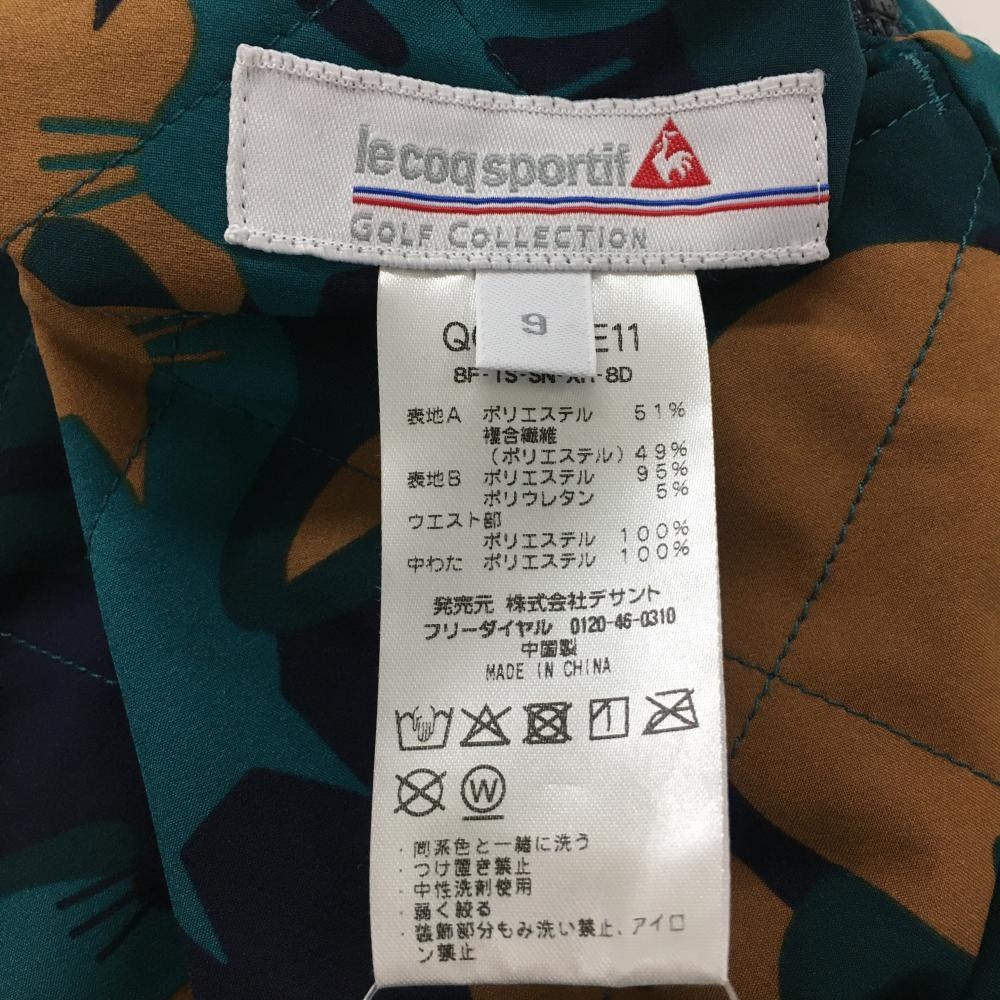 【美品】ルコック 中綿リバーシブルスカート グリーン×ネイビー ネコ総柄 片面起毛素材 レディース 9(M) ゴルフウェア le coq sportif
