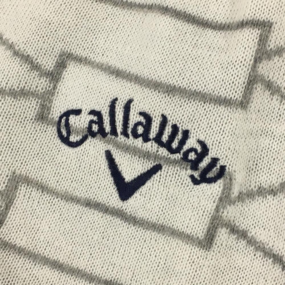 キャロウェイ セーター 白×グレー 総柄 裏地付き ウール混 ニット メンズ L ゴルフウェア Callaway