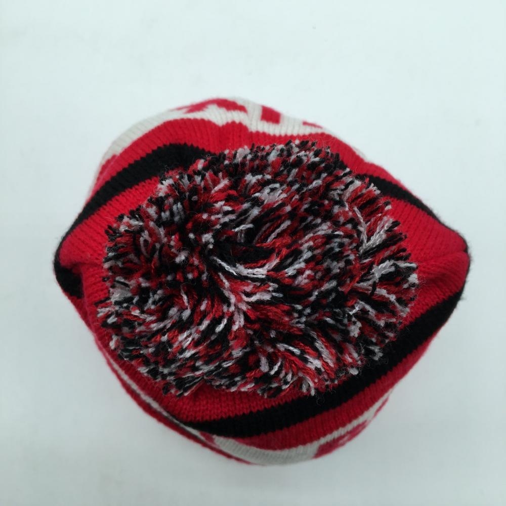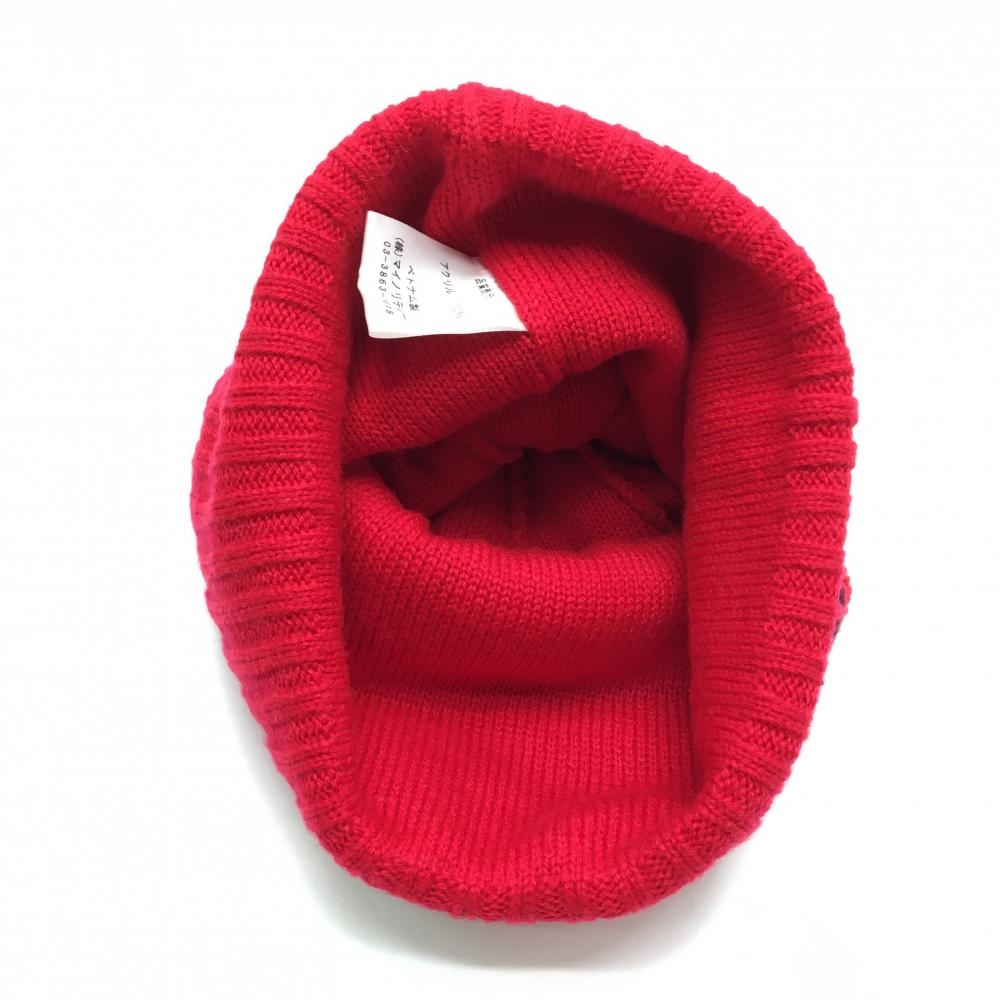 【超美品】クランク ニット帽 レッド×白 アクリル100% ボンボン付 レディース ゴルフウェア CLUNK