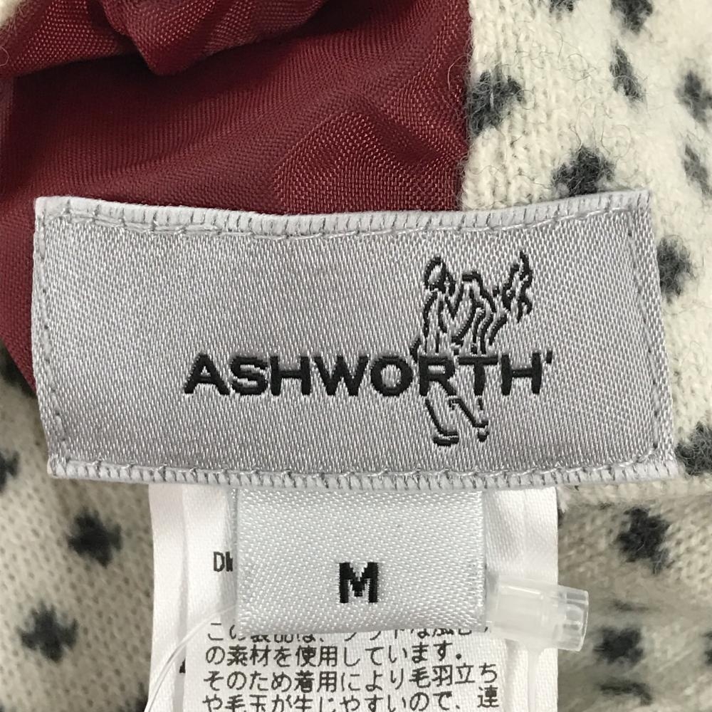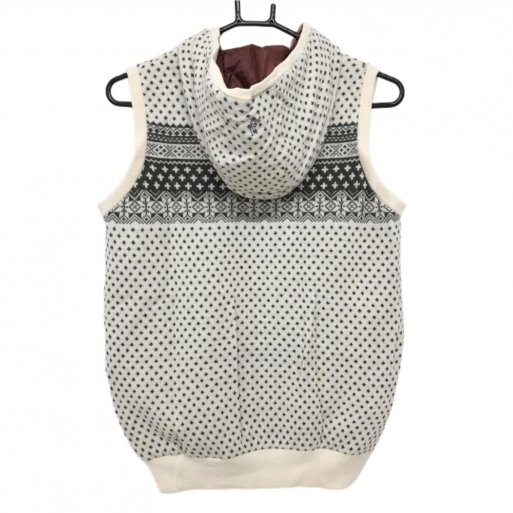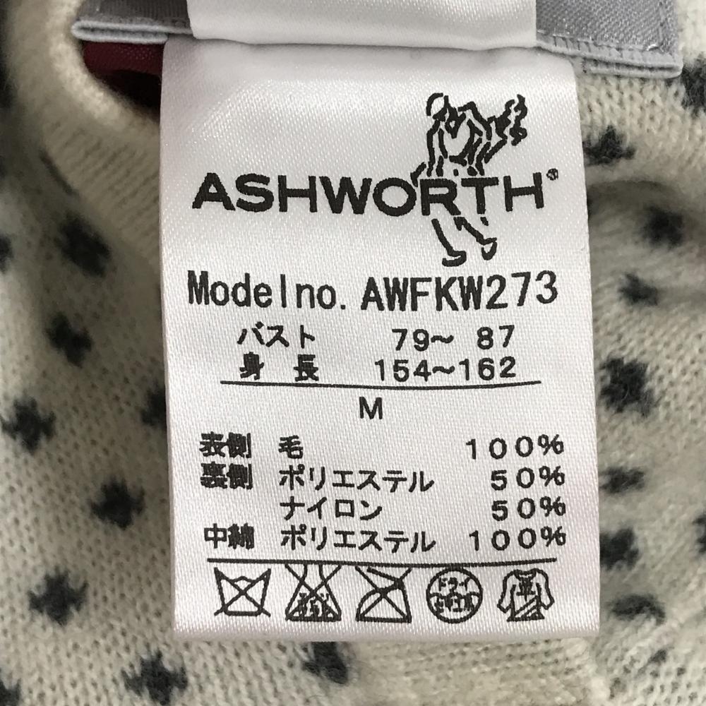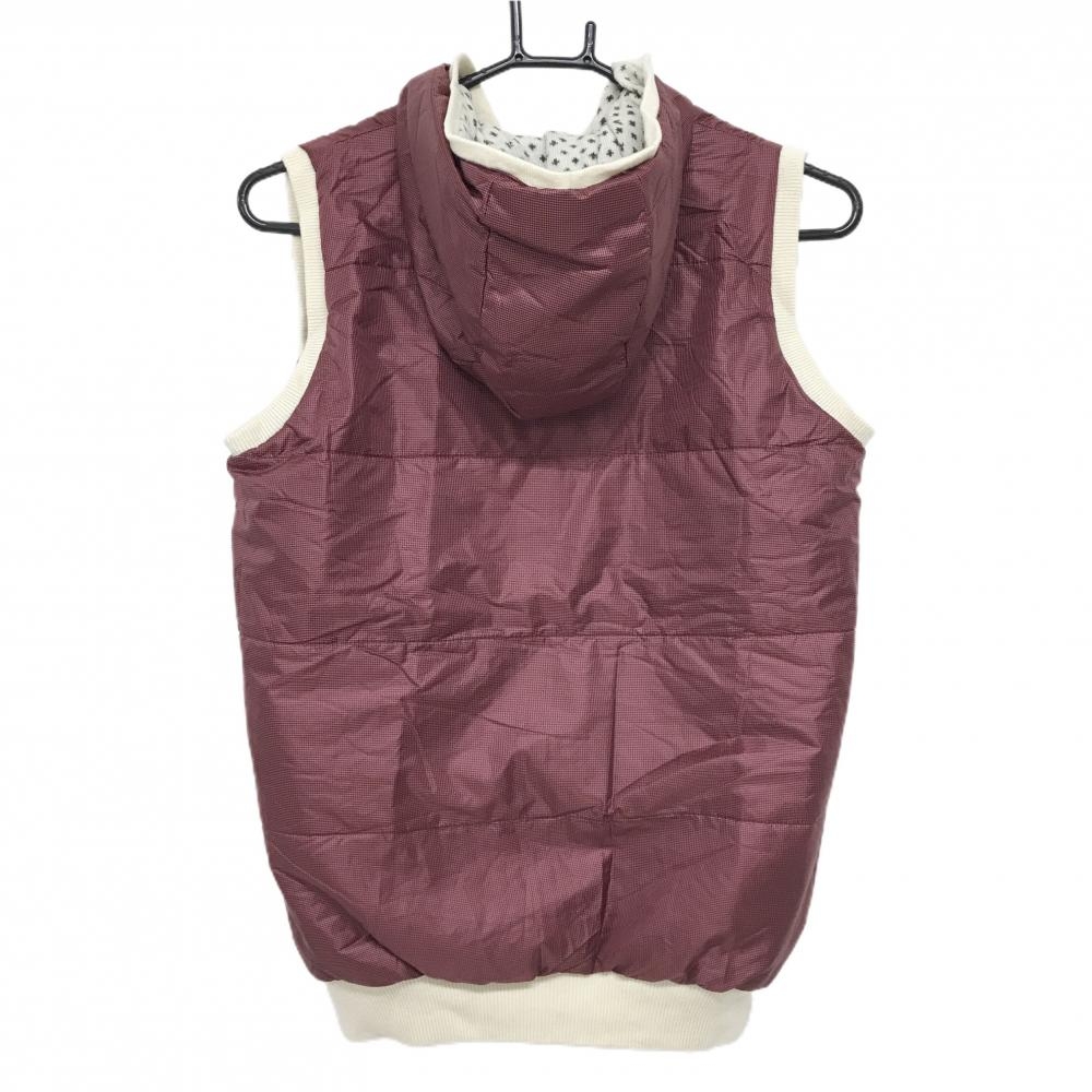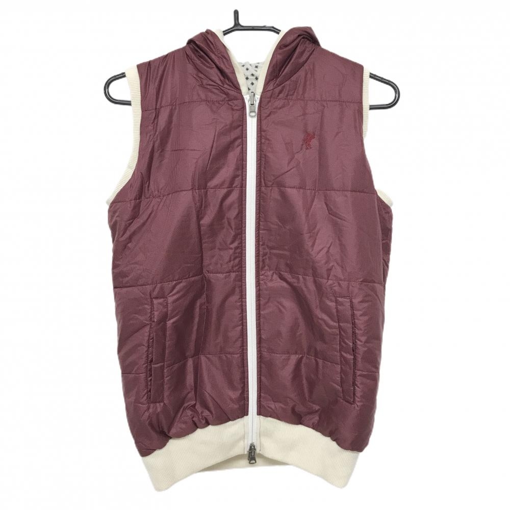 【美品】アシュワース フード付き中綿リバーシブルベスト アイボリー×ダークグレー 裏ボルドー 総柄 レディース M ゴルフウェア ASHWORTH