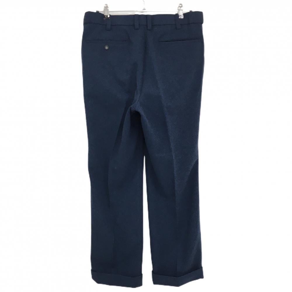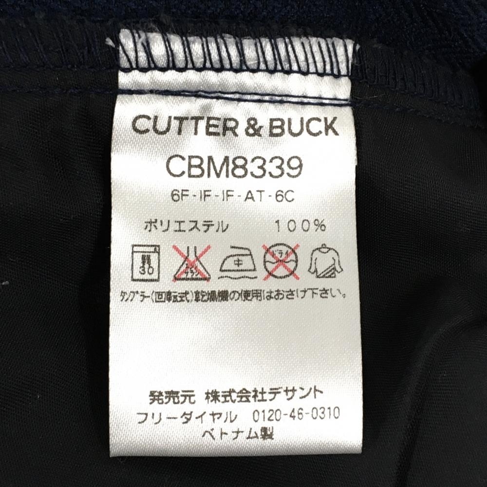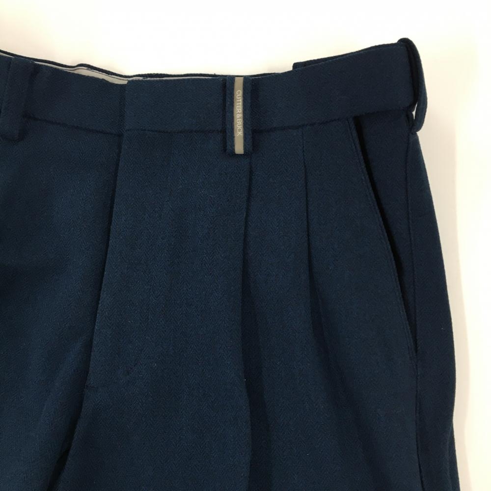 【美品】カッターアンドバック パンツ ネイビー ヘリンボーン織生地 ベルトループロゴ メンズ 85 ゴルフウェア CUTTER&BUCK