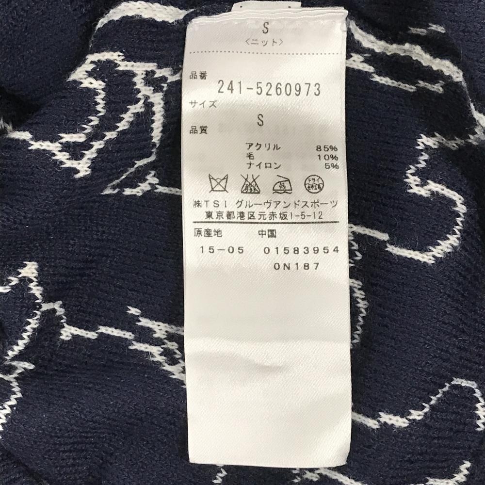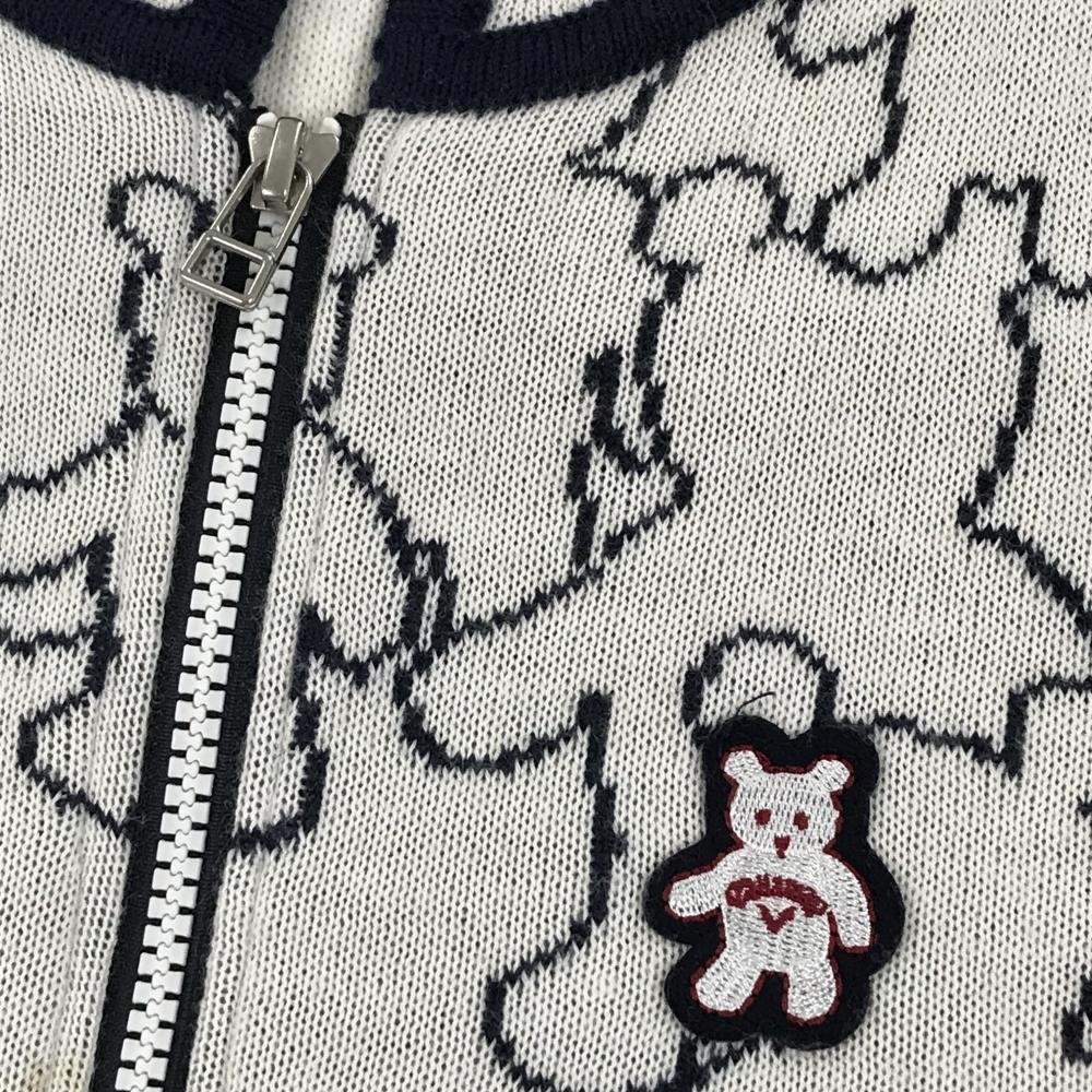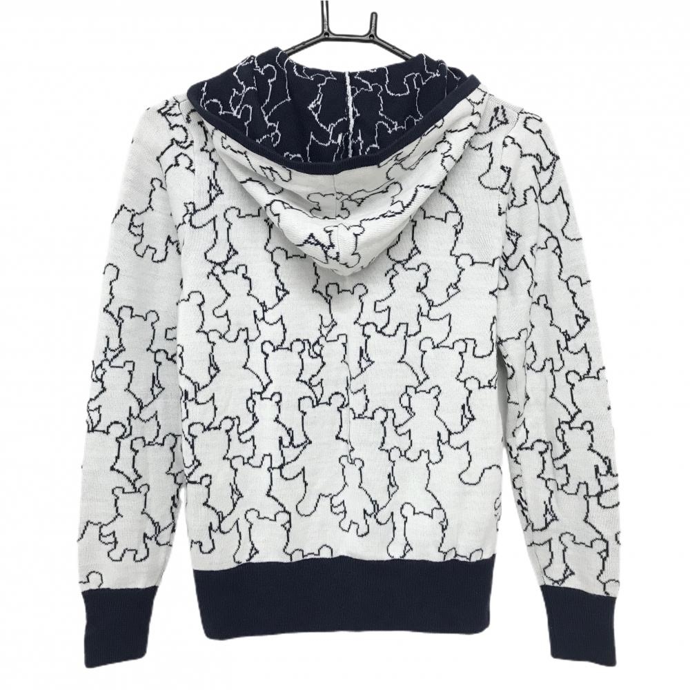キャロウェイ ニットジップパーカー 白×ネイビー クマ総柄 ジャケット レディース S ゴルフウェア Callaway