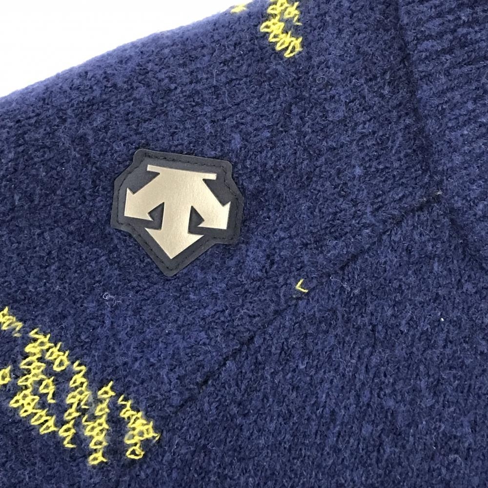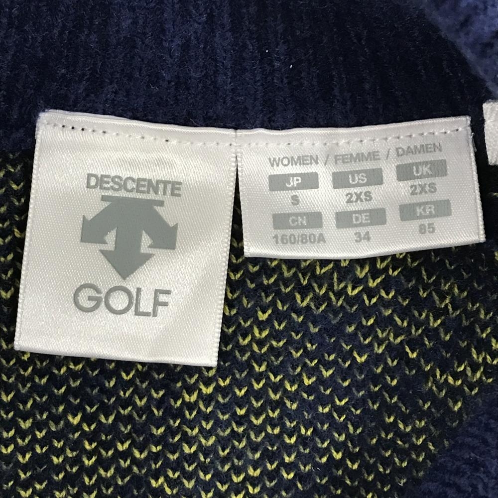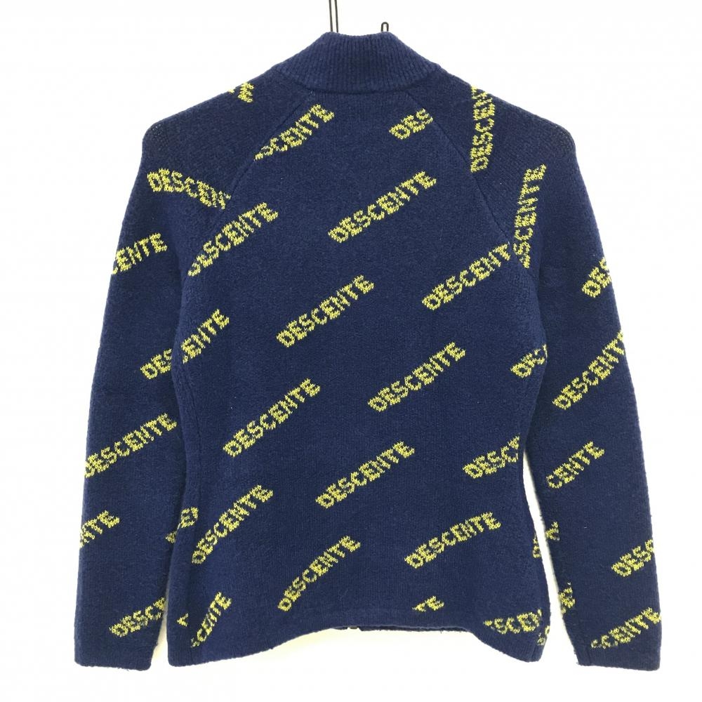 デサントゴルフ ジャケット ネイビー×イエロー ロゴ総柄 中田英寿 レディース S ゴルフウェア DESCENTE