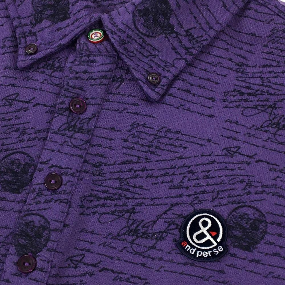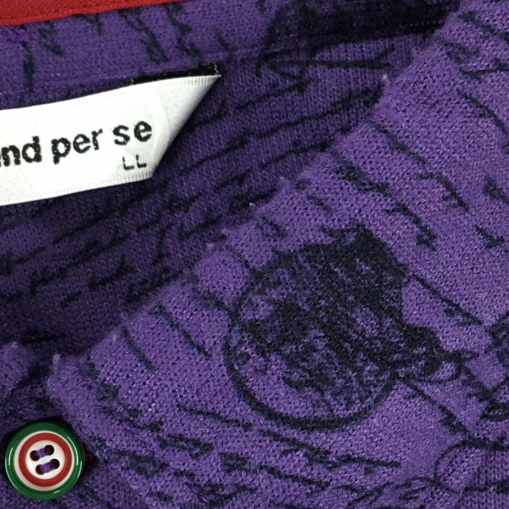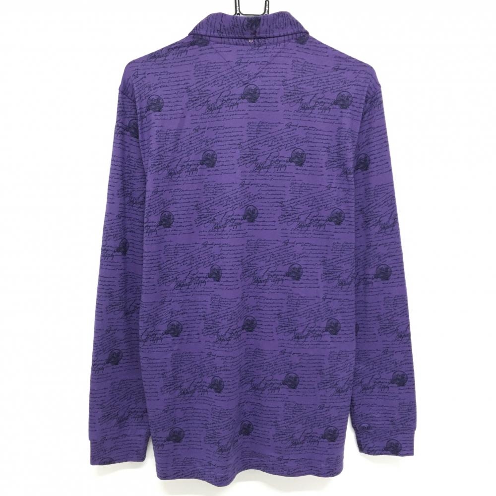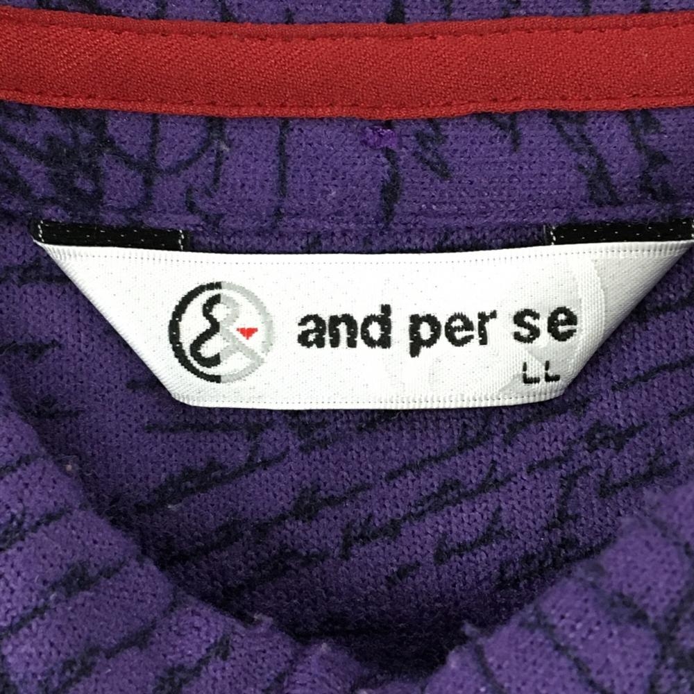 【美品】アンパスィ 長袖ポロシャツ パープル×黒 総柄 表微起毛 ロゴワッペン メンズ LL ゴルフウェア and per se