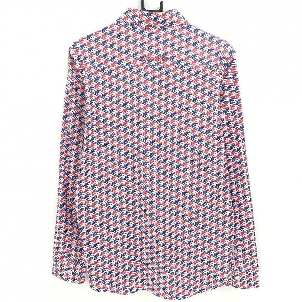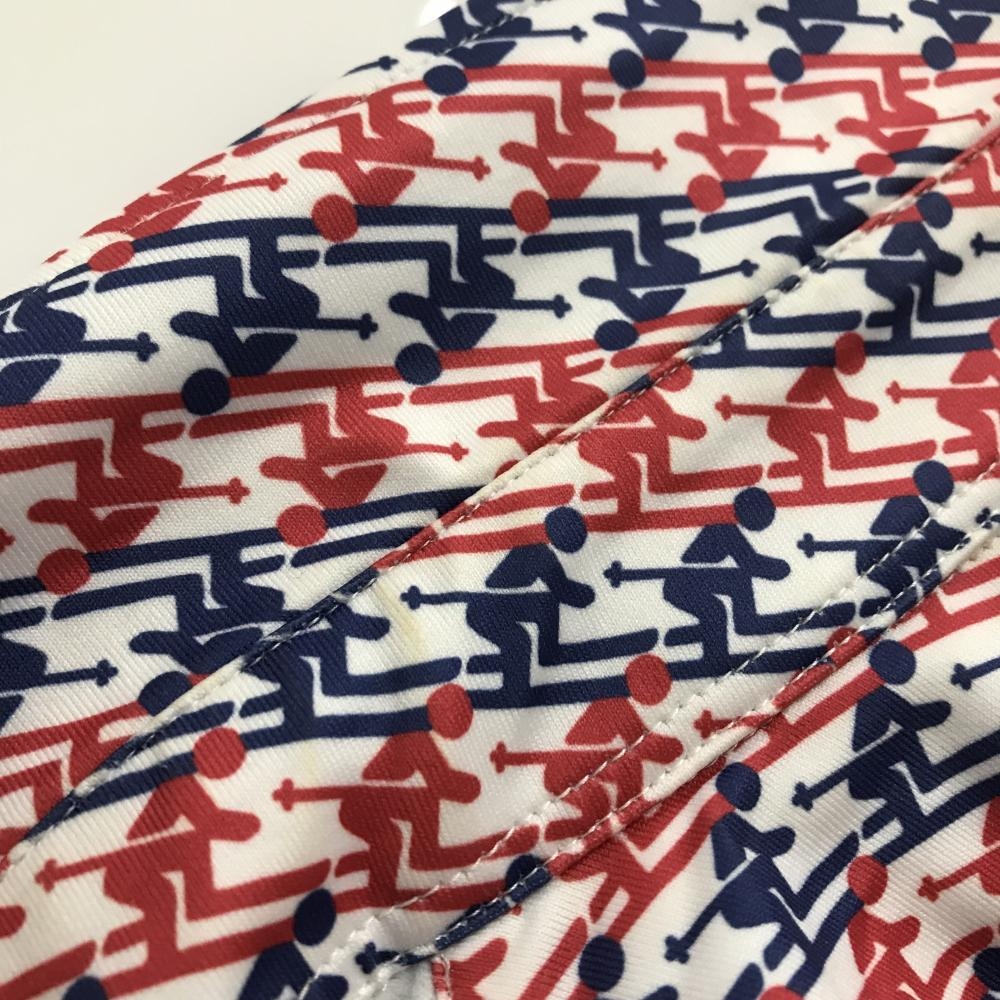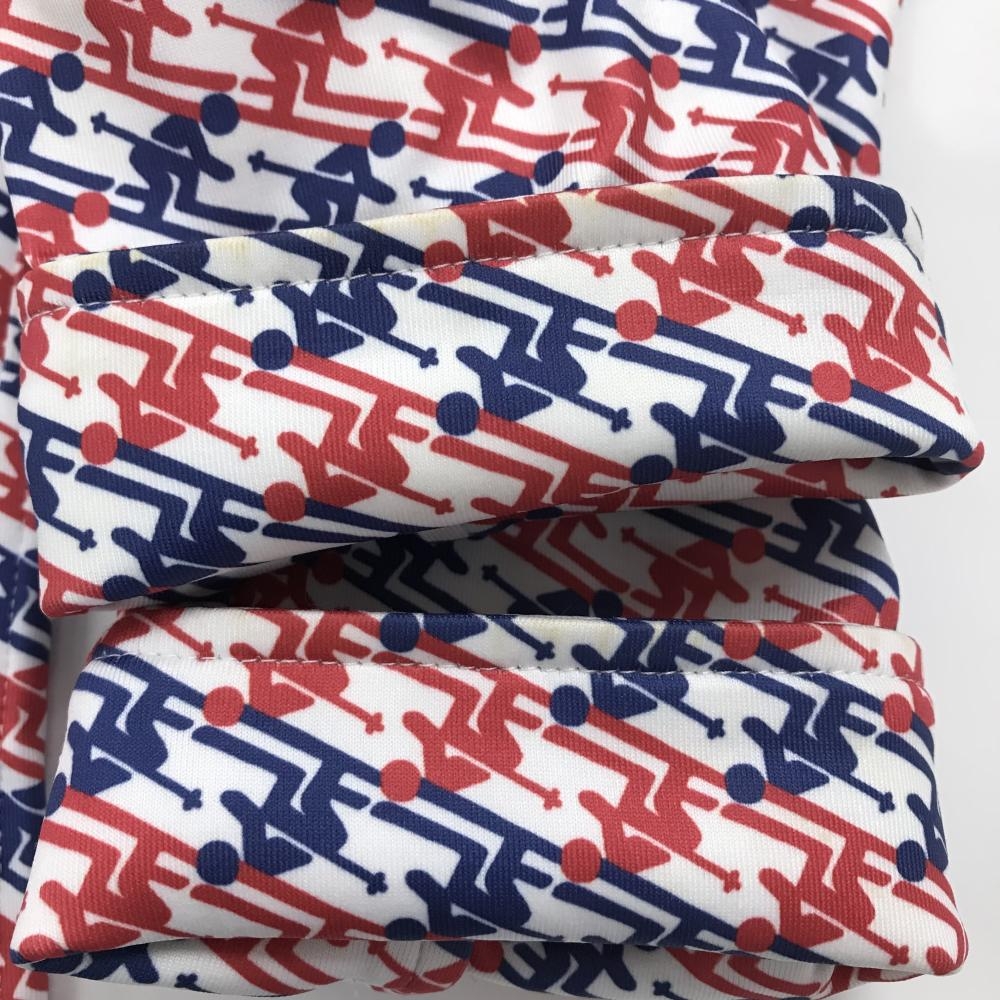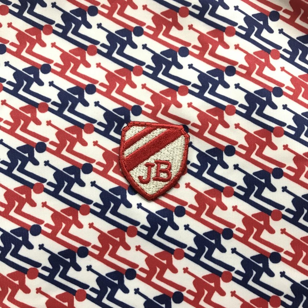 ジャックバニー 長袖ポロシャツ 白×レッド スキーヤー柄 メンズ 6(XL) ゴルフウェア Jack Bunny
