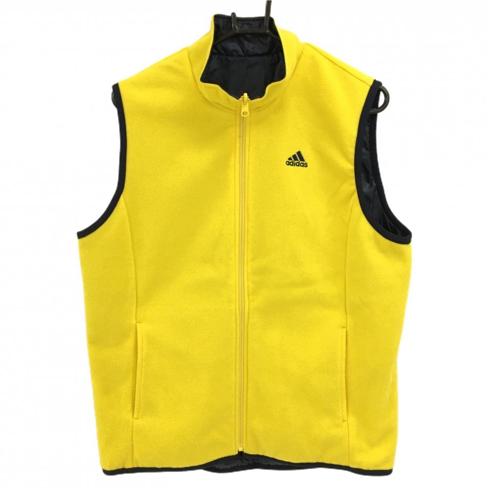 【美品】アディダス リバーシブルジップベスト ネイビー×イエロー 裏フリース メンズ 160 ゴルフウェア adidas