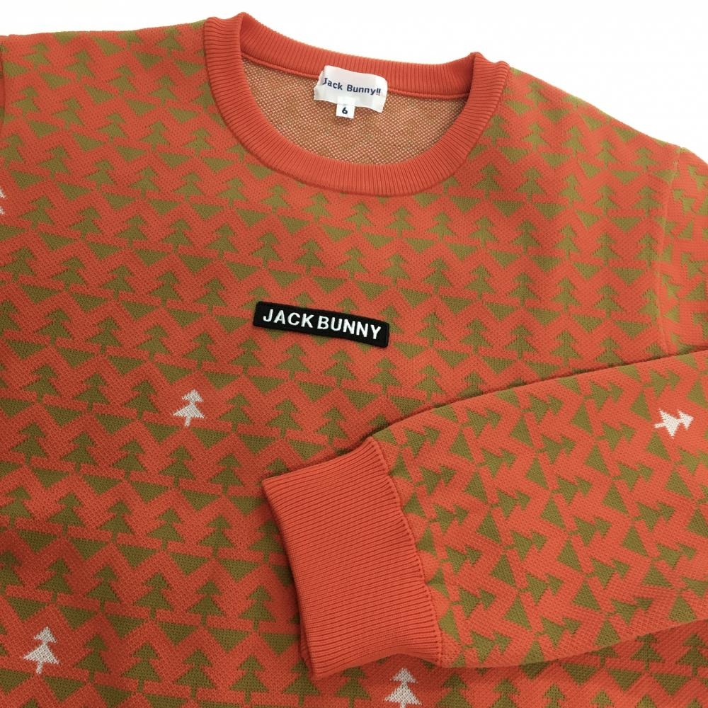 【超美品】ジャックバニー セーター オレンジ×イエローブラウン ツリー柄 ポリエステル100% メンズ 6(XL) ゴルフウェア Jack Bunny