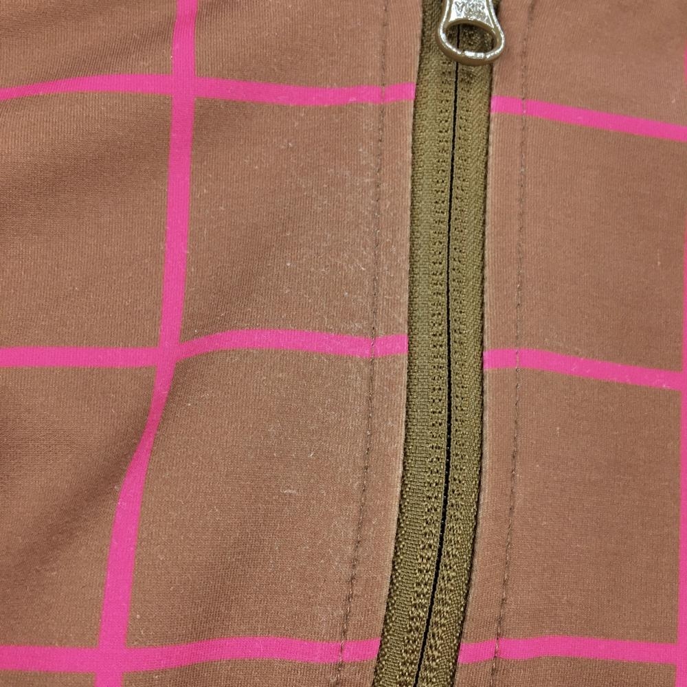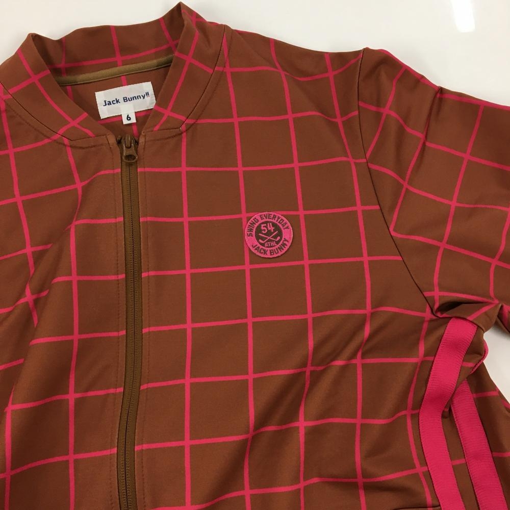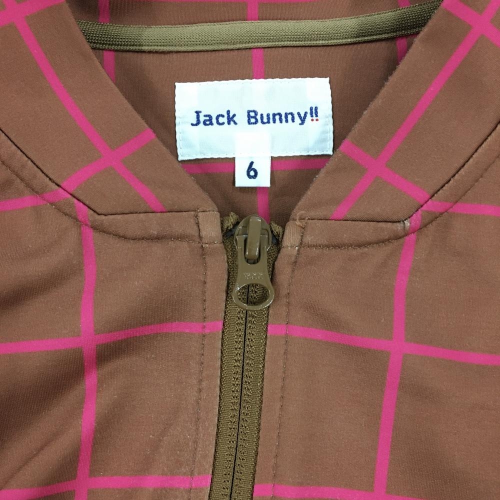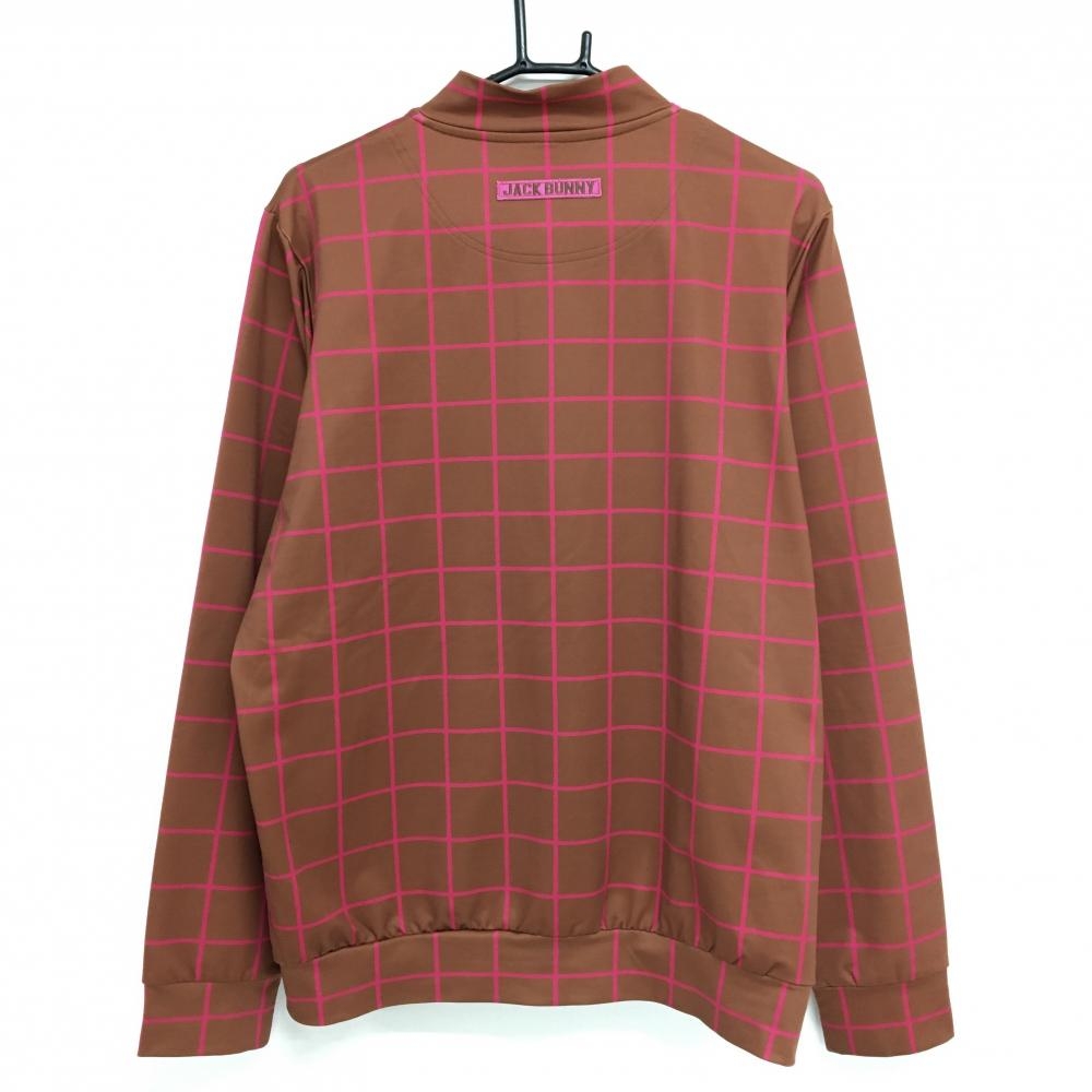 【美品】ジャックバニー ジャケットブルゾン ブラウン×ピンク 格子柄 ロゴワッペン メンズ 6(XL) ゴルフウェア Jack Bunny
