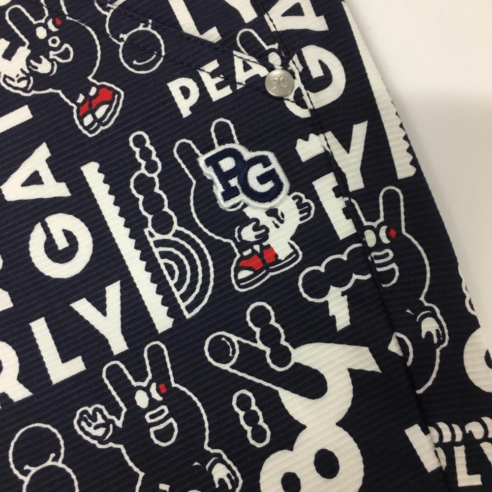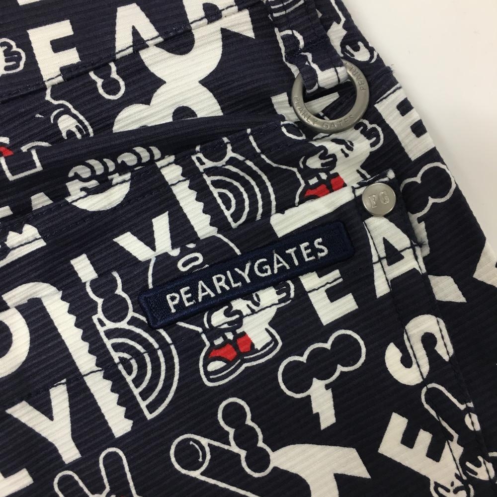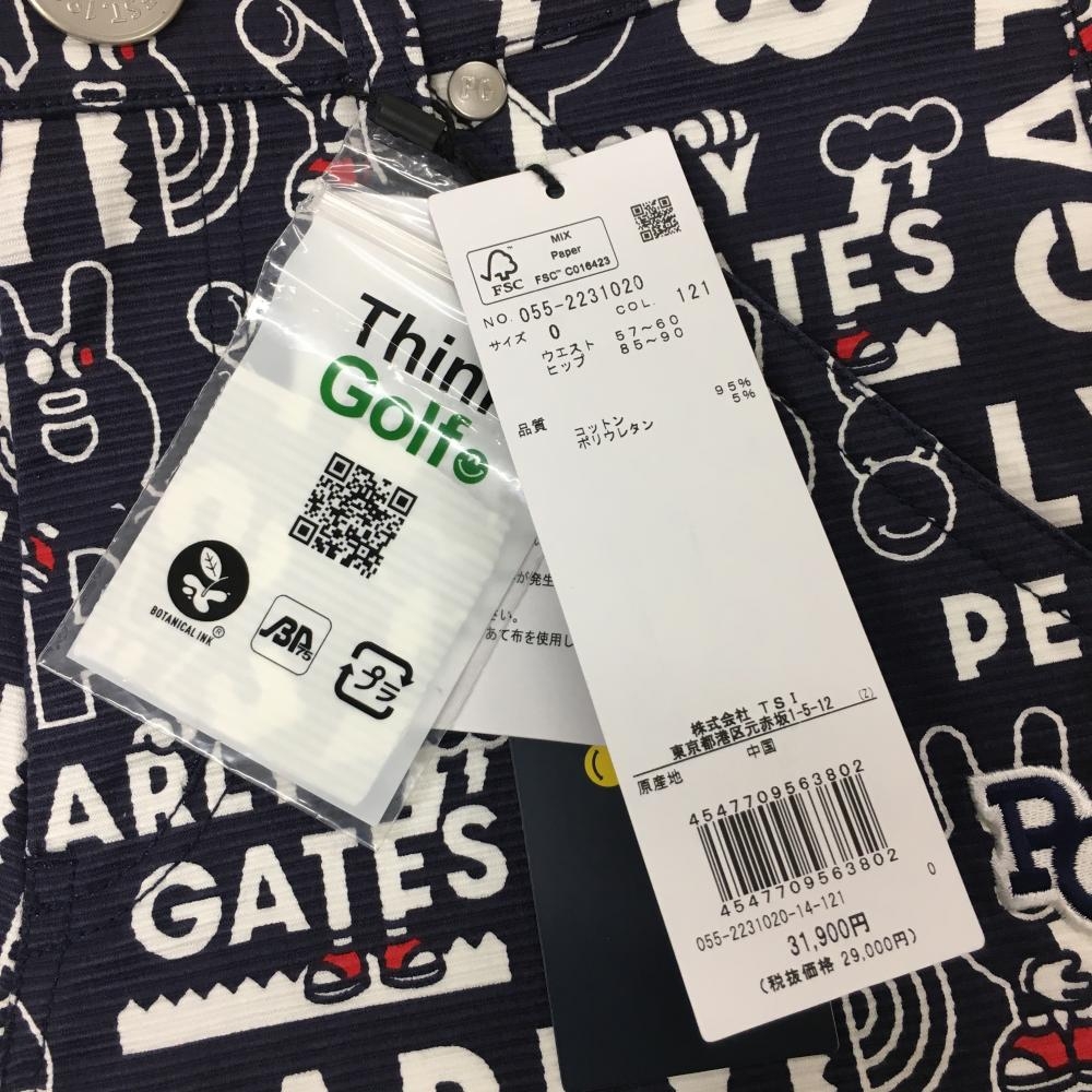 【新品】パーリーゲイツ パンツ ネイビー×白 ロゴ総柄 どうしちゃったPG ボーダー織生地 レディース 0(S) ゴルフウェア PEARLY GATES