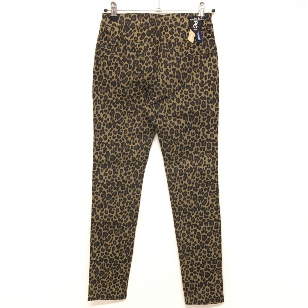 【新品】パーリーゲイツ パンツ ベージュ系×黒 レオパード ロゴ白 ストレッチ レディース 0(S) ゴルフウェア PEARLY GATES