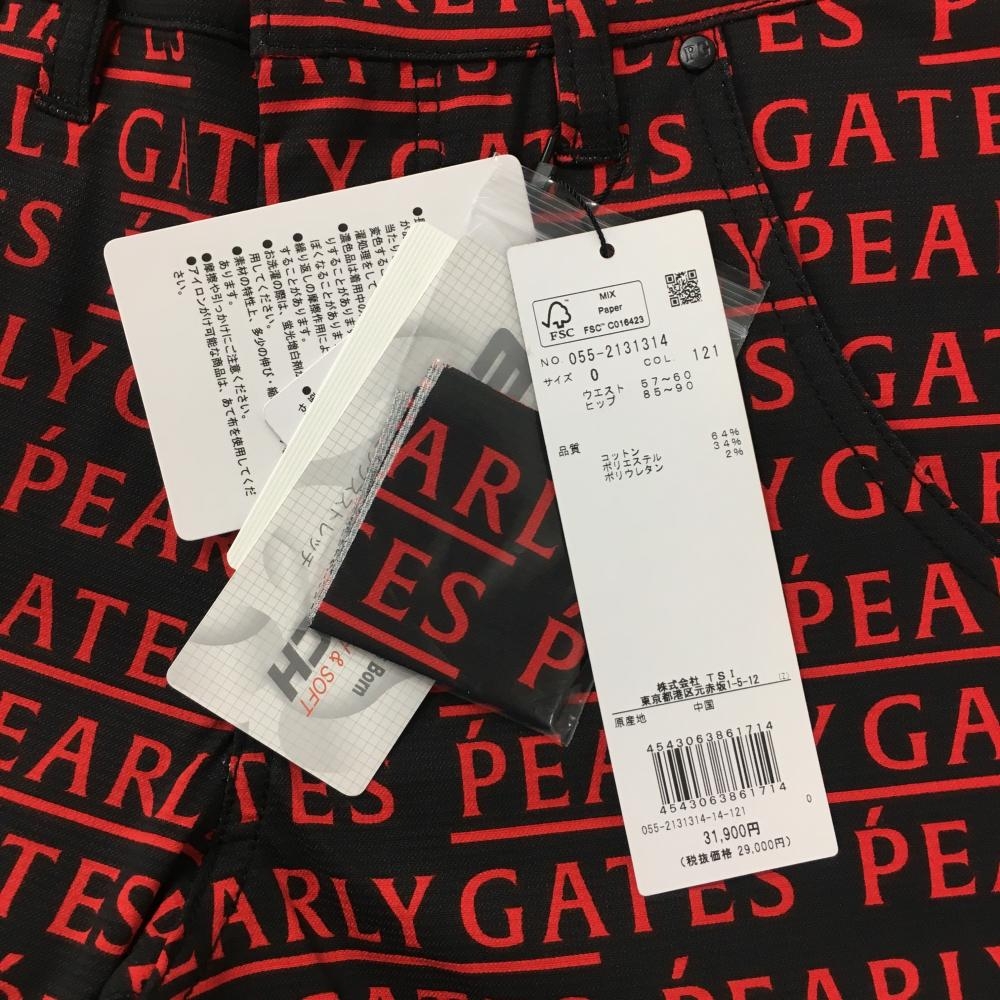 【新品】パーリーゲイツ パンツ 黒×レッド ロゴ総柄 刺しゅう白 レディース 0(S) ゴルフウェア PEARLY GATES