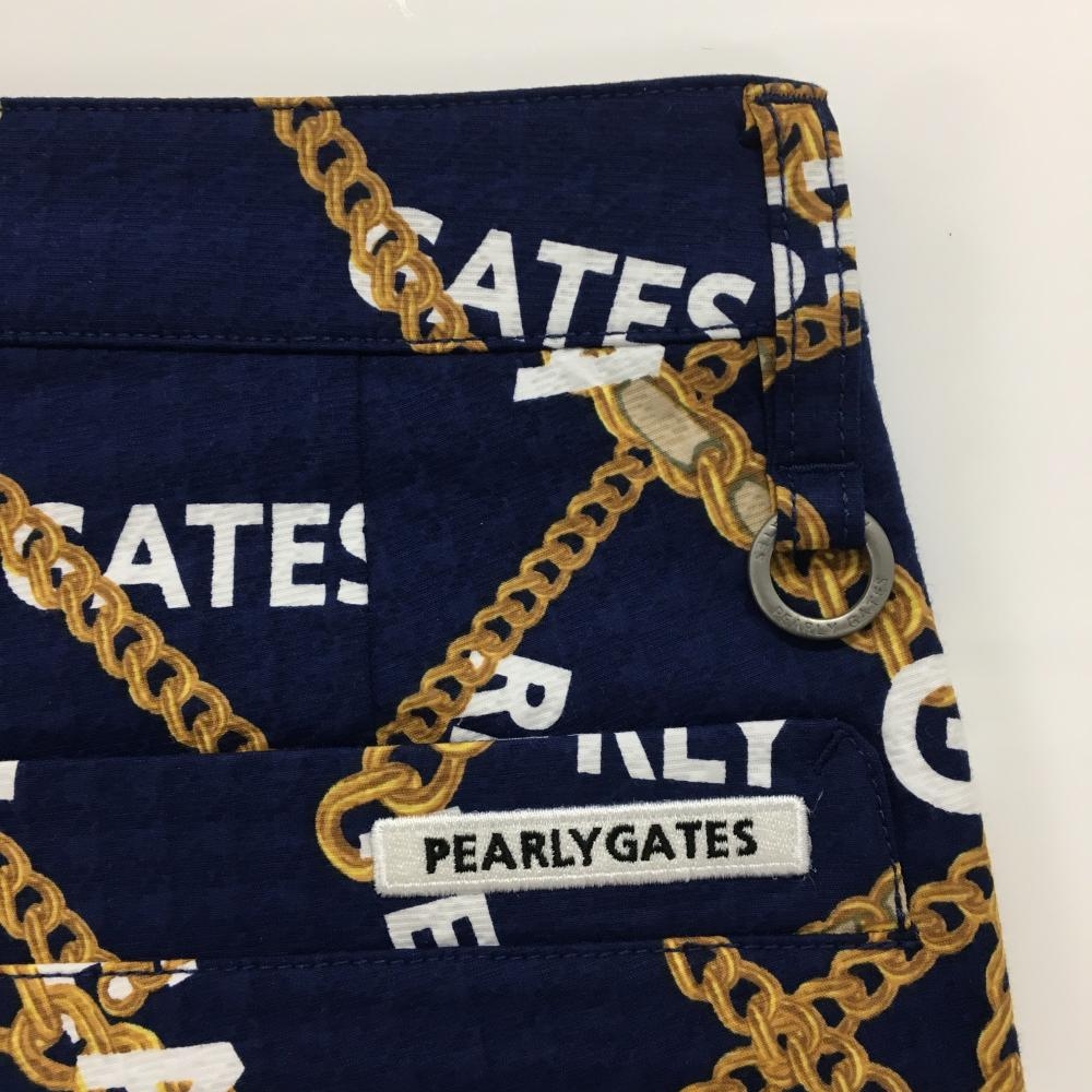 【新品】パーリーゲイツ パンツ ネイビー×ゴールド チェーン柄 織生地 レディース 0(S) ゴルフウェア PEARLY GATES