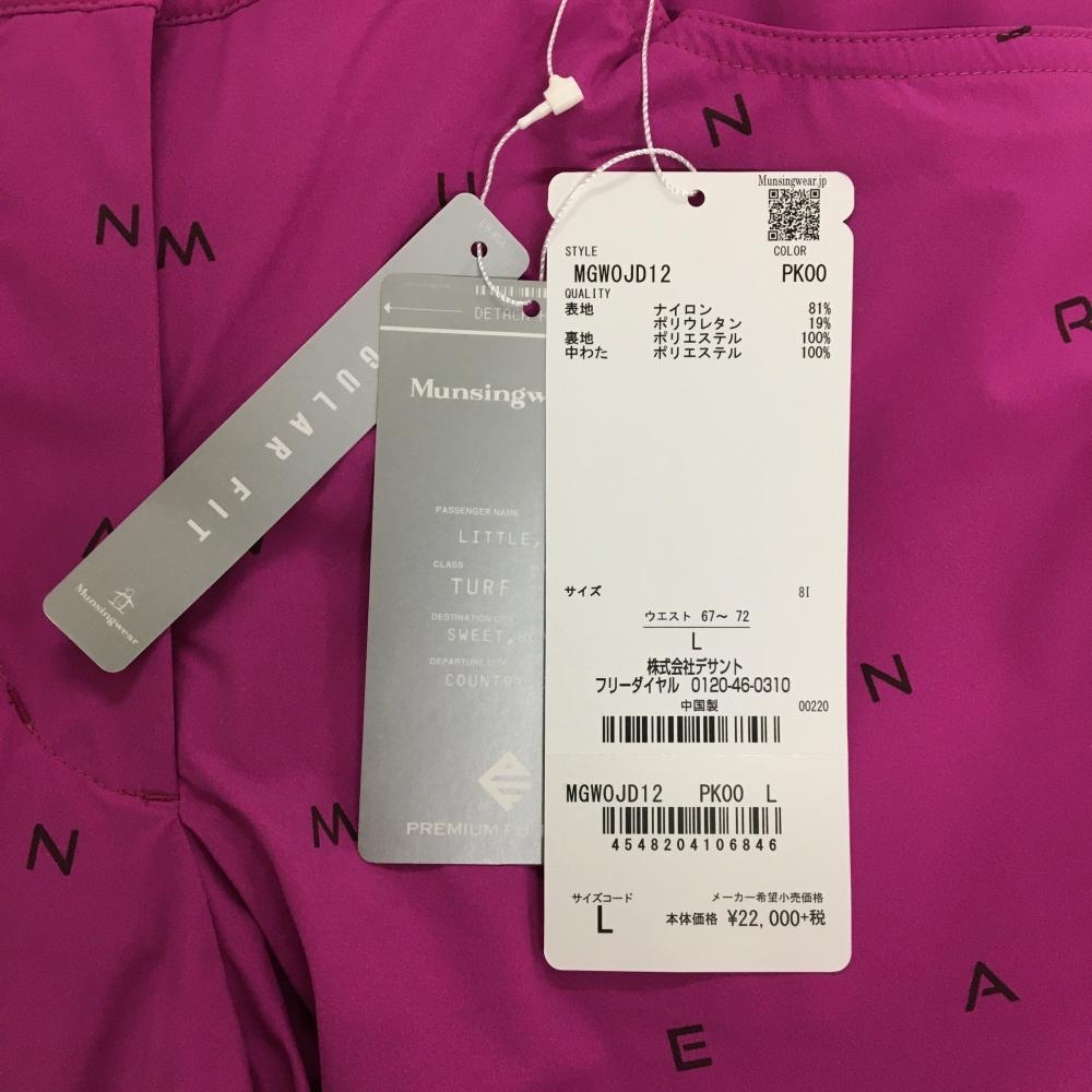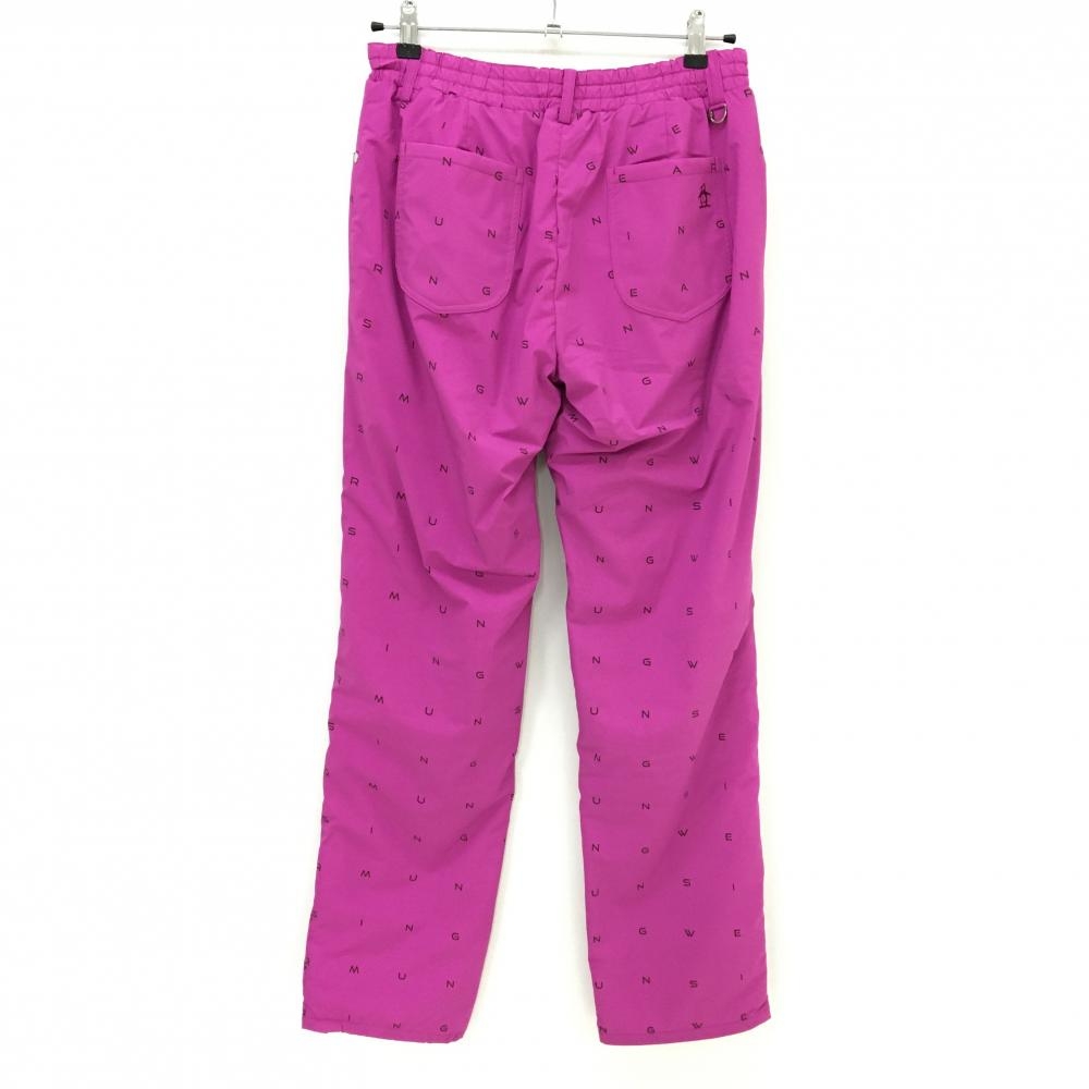 【新品】マンシングウェア 中綿パンツ ピンク×黒 ロゴ総柄 はっ水 ストレッチ レディース L ゴルフウェア Munsingwear
