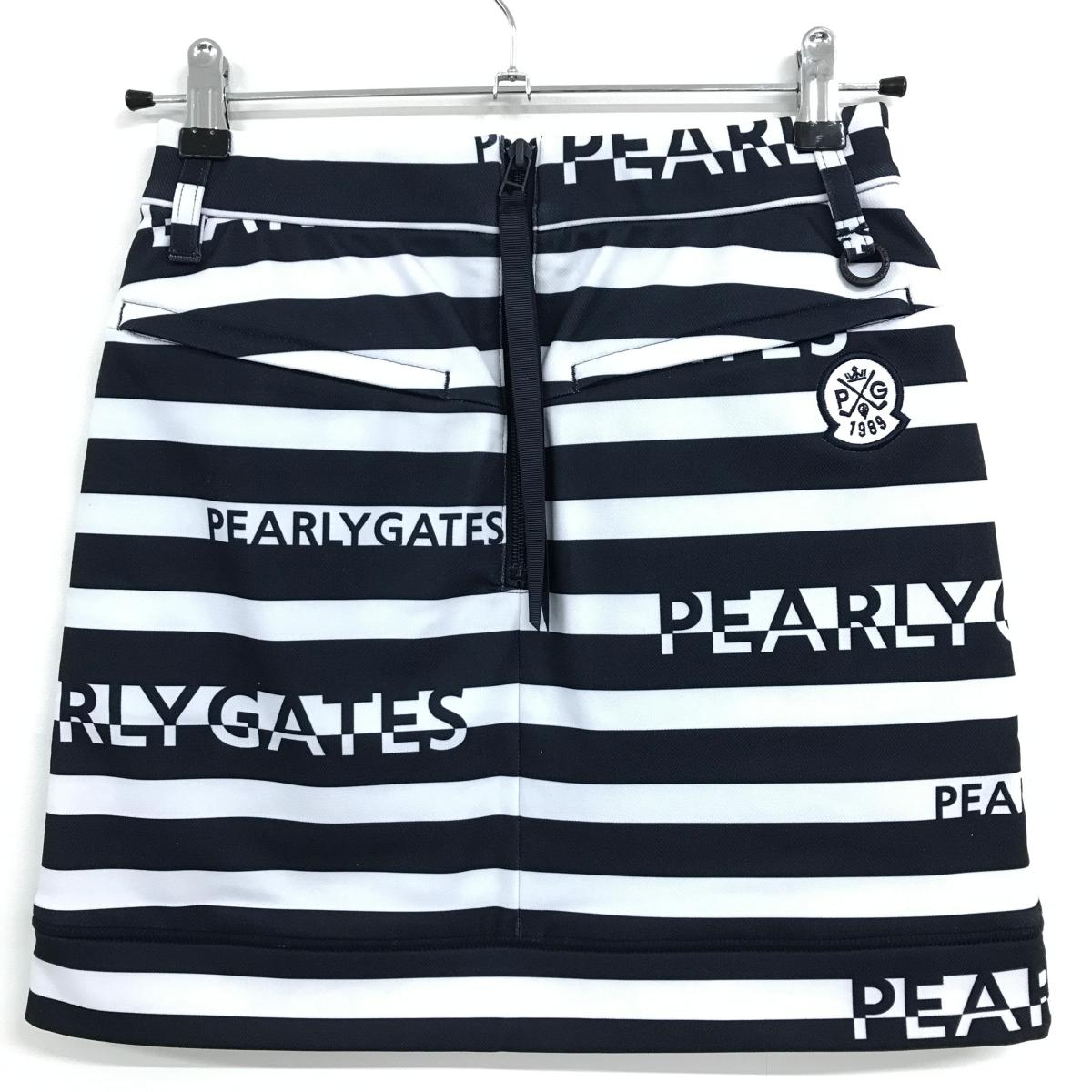 【新品】パーリーゲイツ スカート 白×ネイビー ボーダー 裏微起毛 バックファスナーリボン レディース 00(XS) ゴルフウェア PEARLY GATES